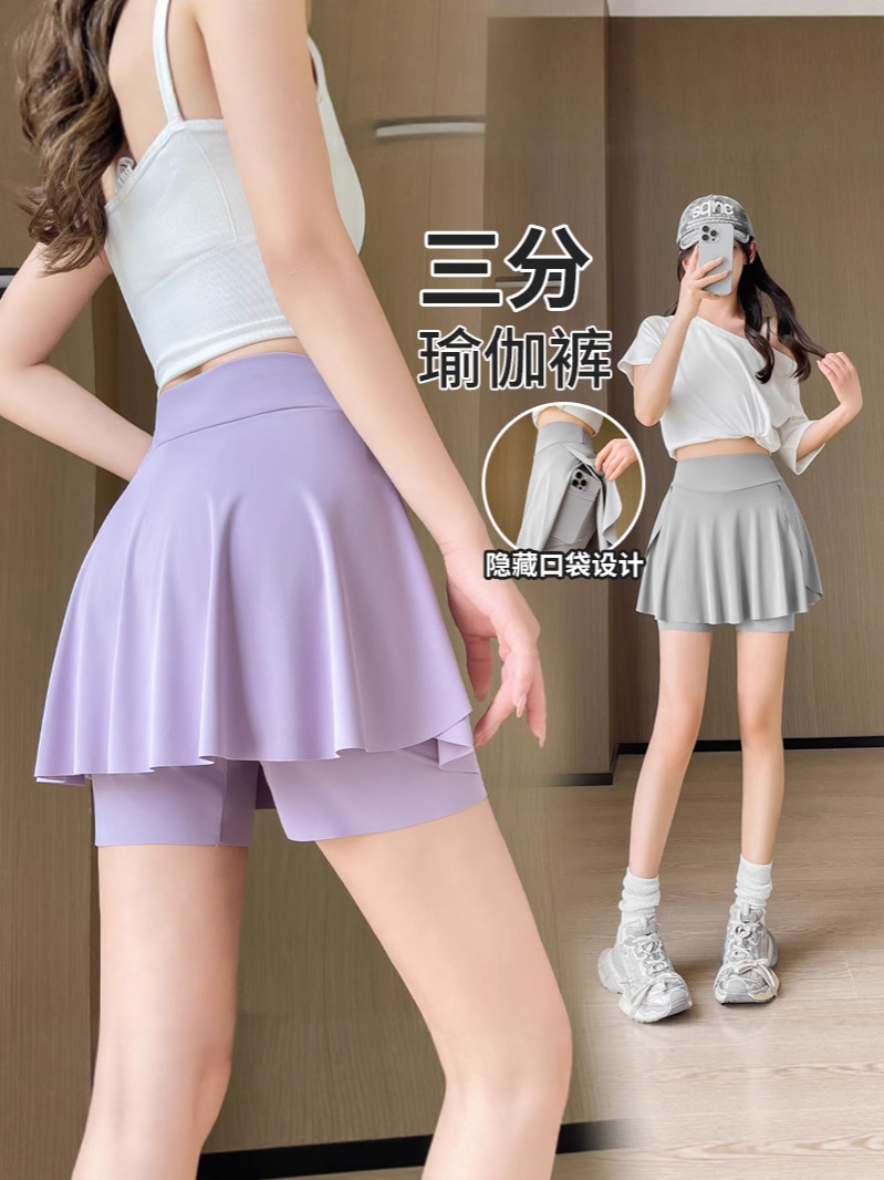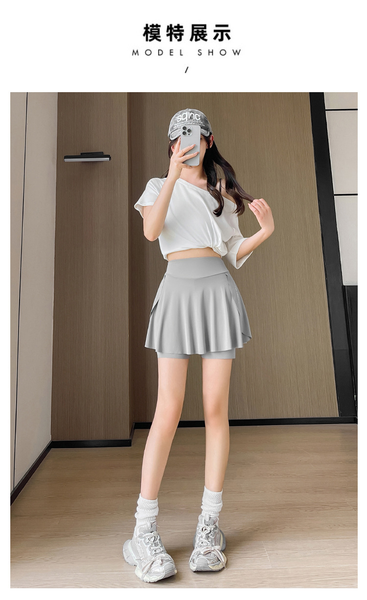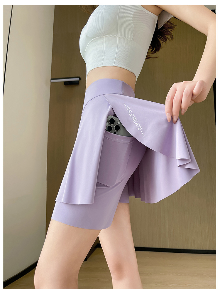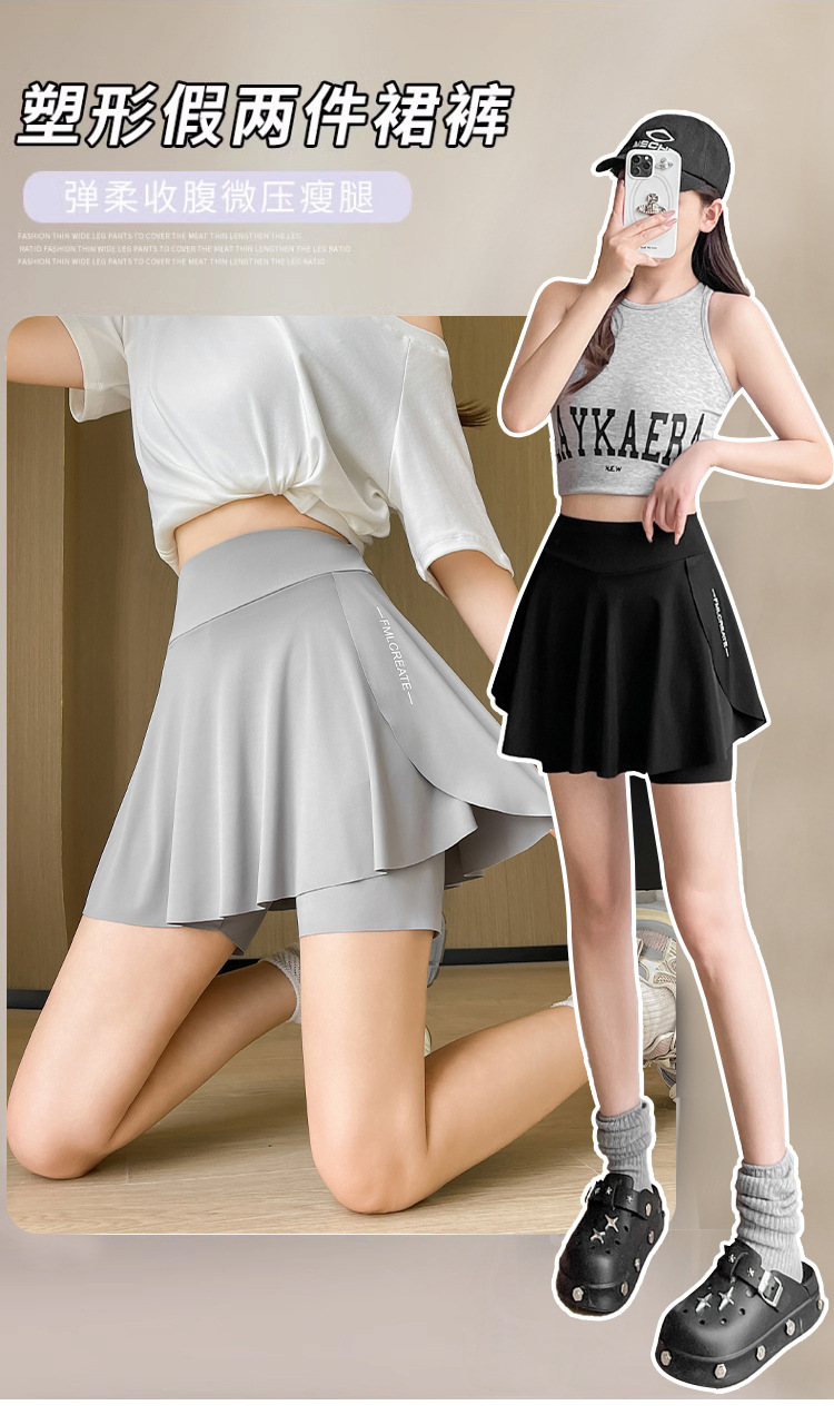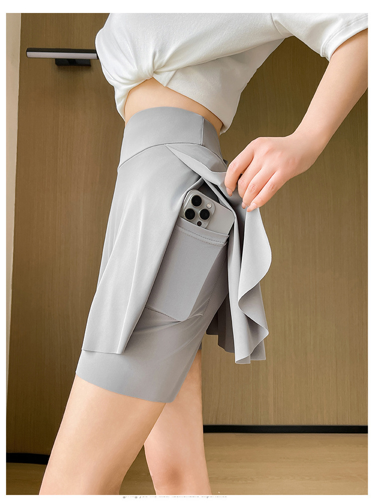 Женские шорты для бега из ледяного шелка с высокой талией, закрывающие бедра, спортивные штаны для фитнеса, юбка для бега, быстросохнущие шорты для йоги, велоспорта, большие размеры