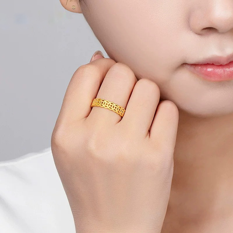 Золотое кольцо 18к, цвет золота AU750, антикварное, цельное, негибкое, популярная монета, кольцо на удачу для женщин, оптом
