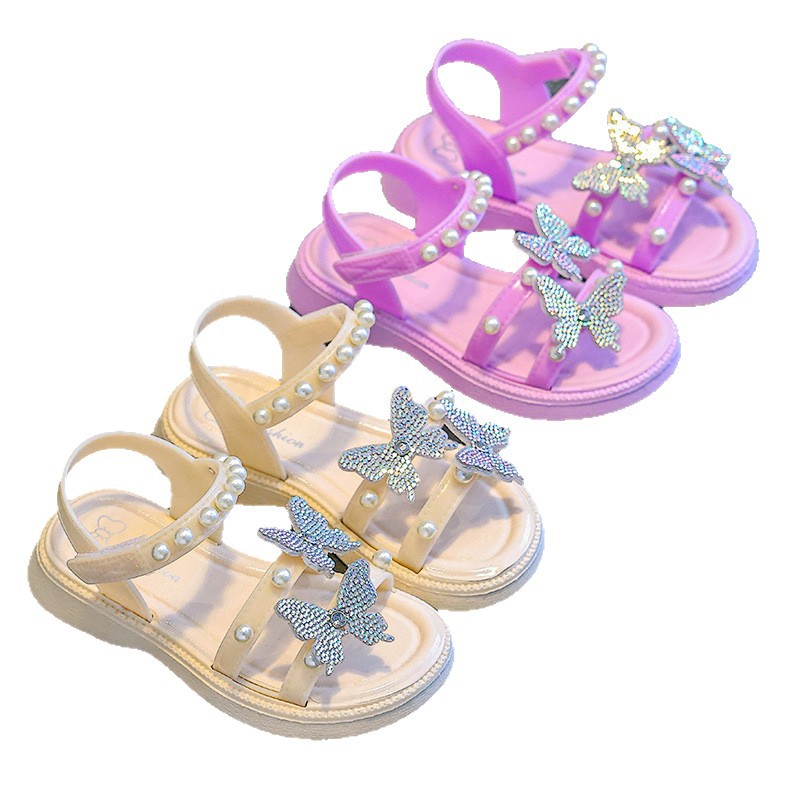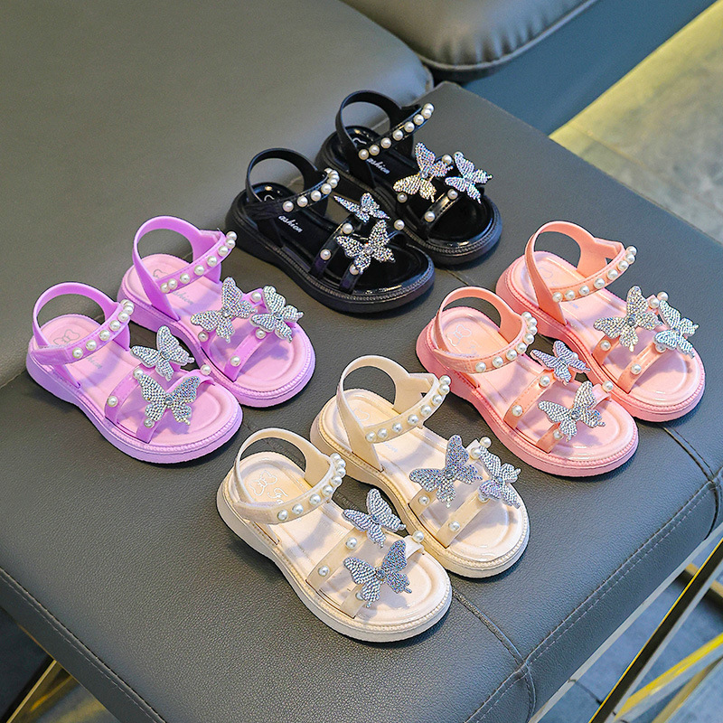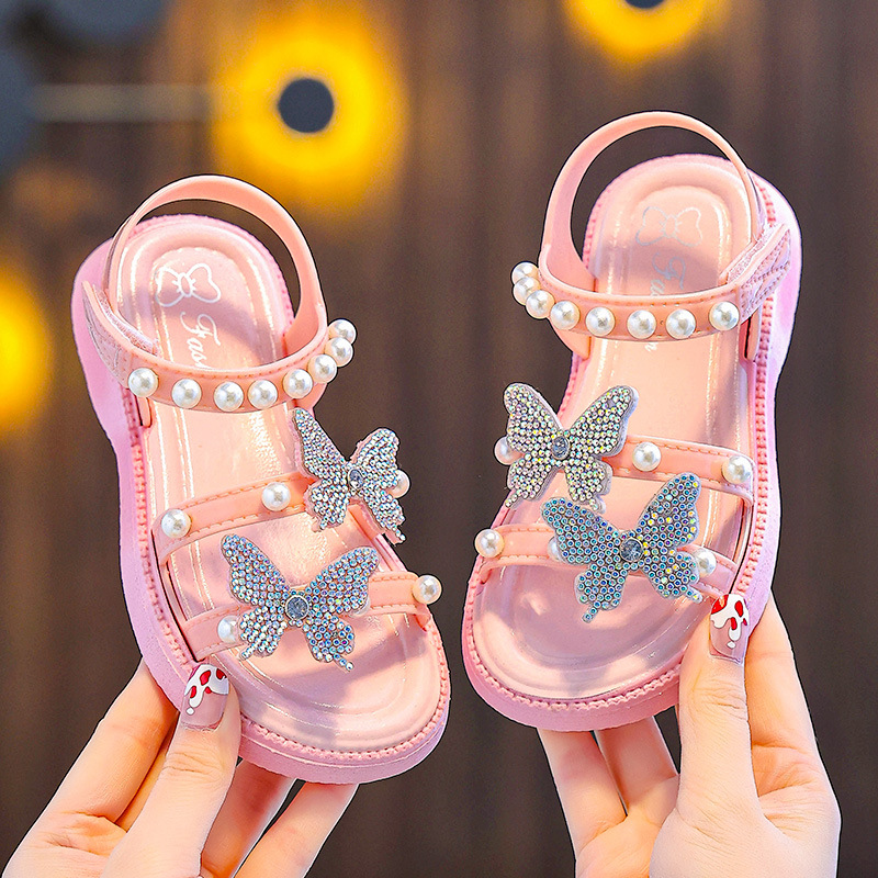 Сандалии для девочек на летнюю верхнюю одежду, детский бант, розовая принцесса, универсальная мягкая подошва, милая девочка.