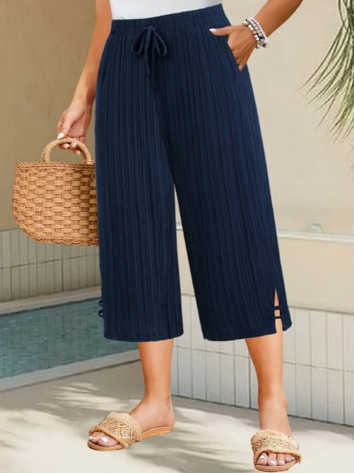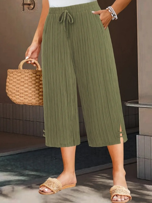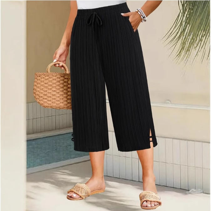 2025 Европейские и американские трансграничные новые брюки Amazon большого размера, повседневные широкие брюки с 7 точками, эластичный пояс с карманами