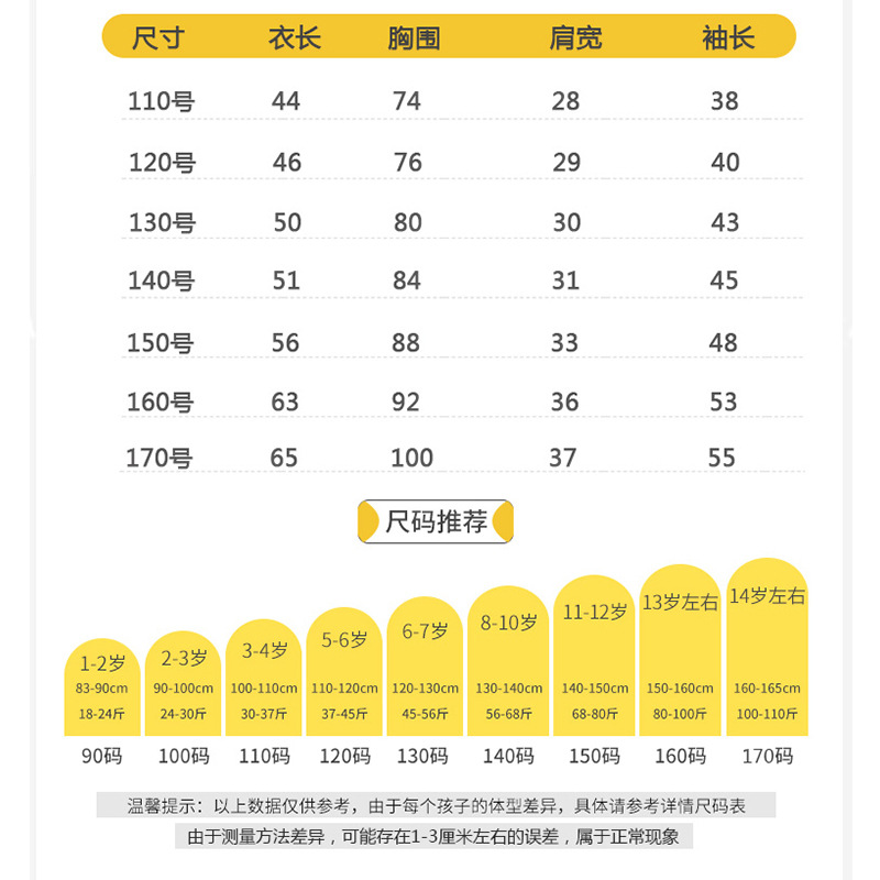 110cm; 120cm; 130cm; 140cm; 150cm; 160cm; 170cm; 180cm