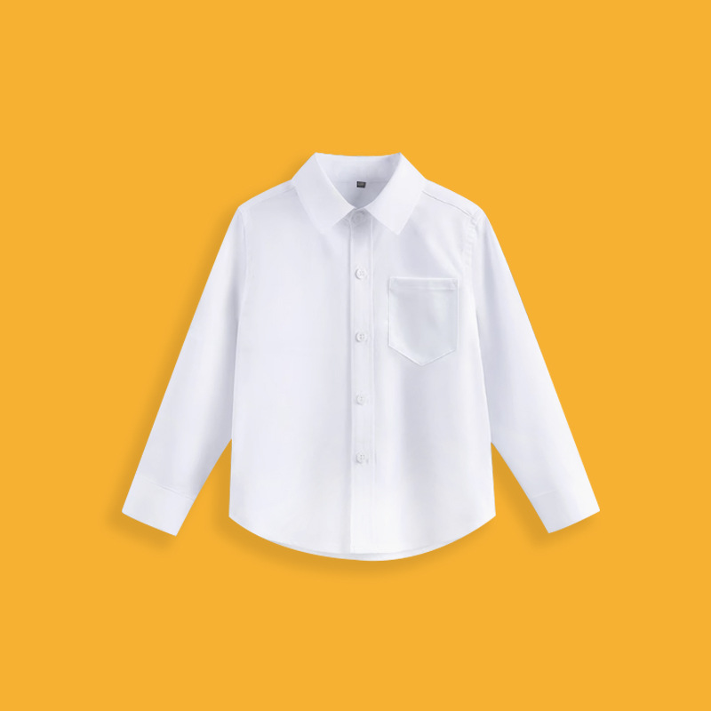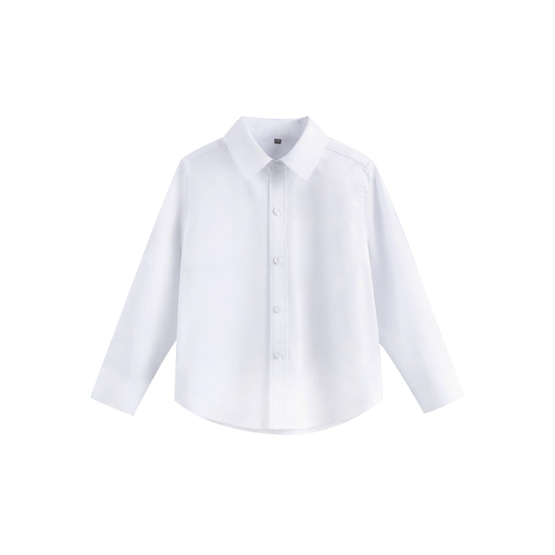 Детская белая рубашка из чистого хлопка, белая рубашка для мальчика с длинными рукавами, весенне-осенний белый внутренний топ для девочек, школьная форма для выступлений