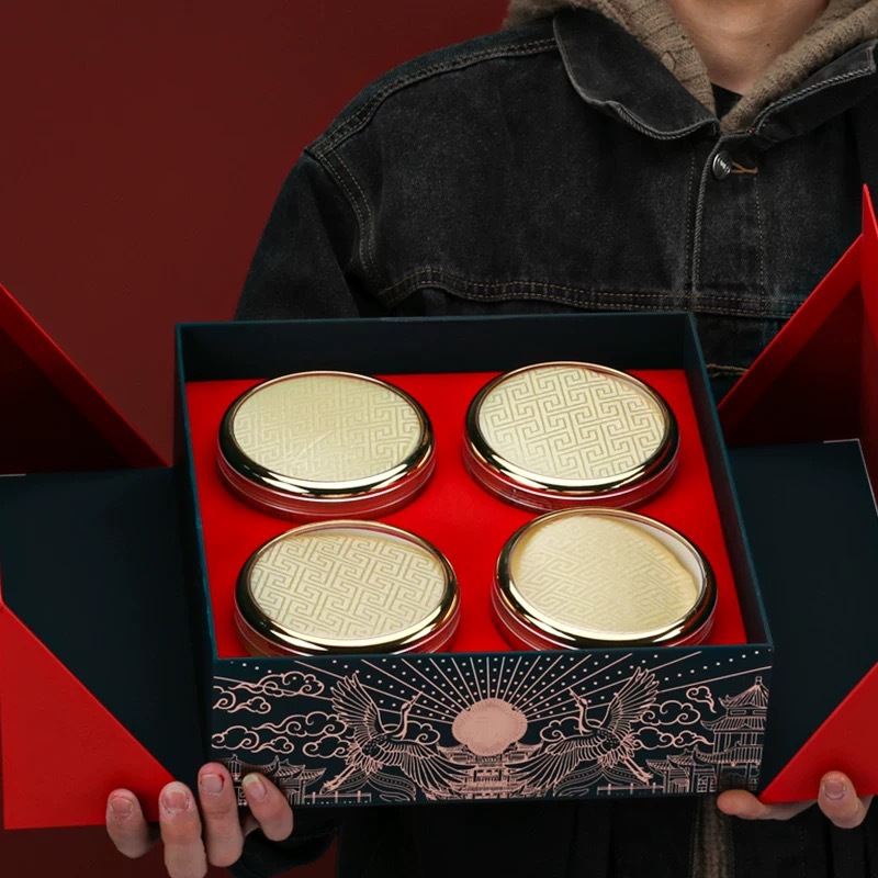Подарочная коробка для упаковки товаров для здоровья в китайском стиле: черное золото, двойное открытие, с изображением птичьего гнезда, американского женьшеня, лисички, красного дендробиума