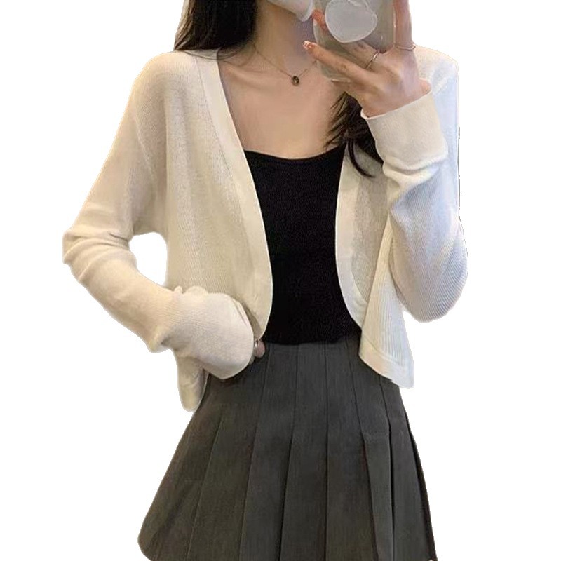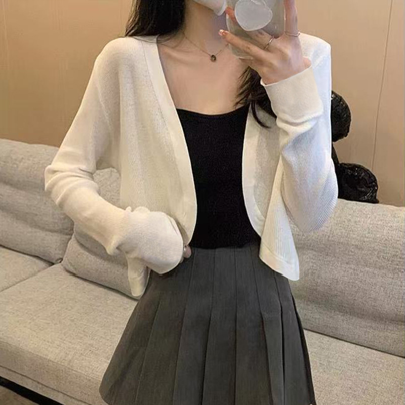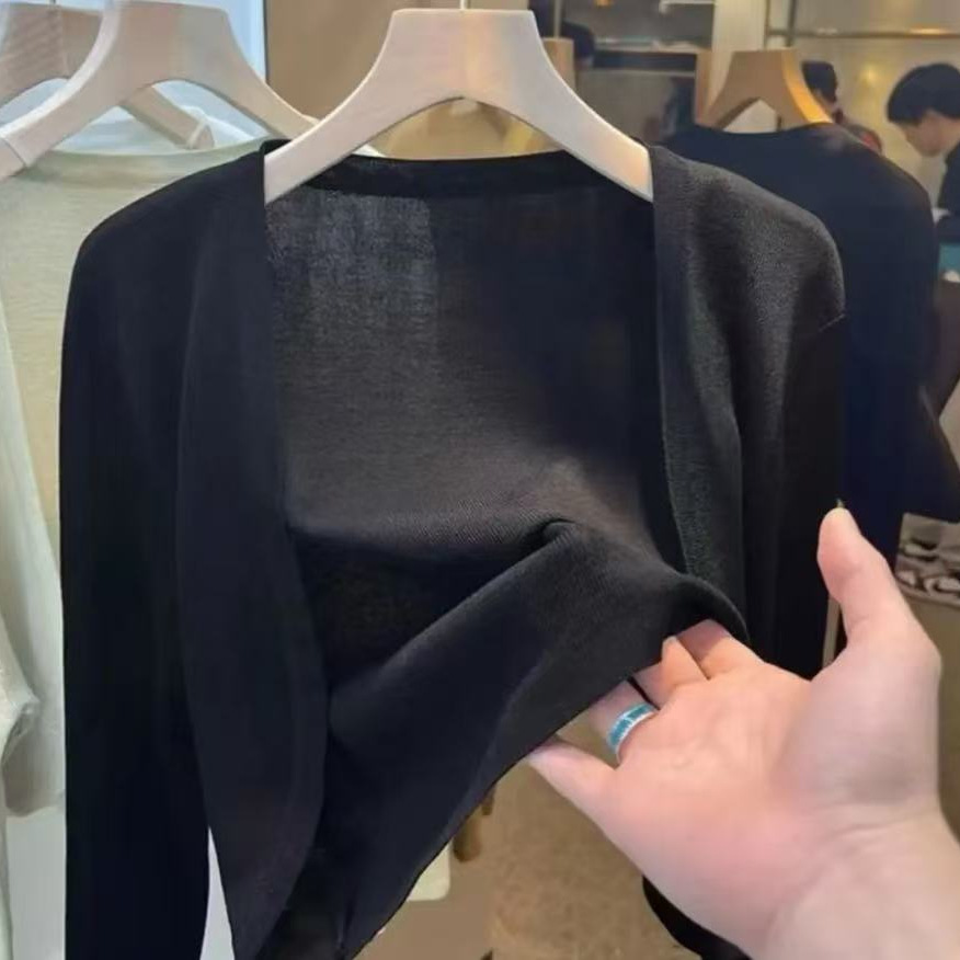 Защитная шаль из ледяного шелка от солнца, весенне-летняя новинка, тонкий универсальный элегантный простой верхний вязаный кардиган с длинными рукавами в западном стиле
