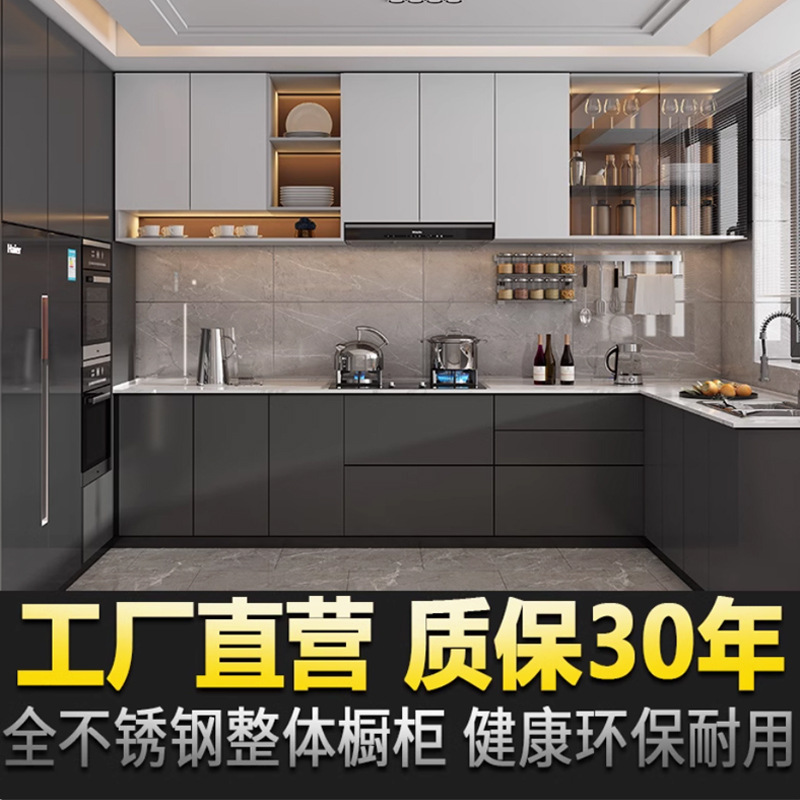 Встроенные шкафы из нержавеющей стали по индивидуальному заказу, открытые современные минималистичные кухонные легкие роскошные шкафы по индивидуальному заказу, кухня, индивидуальная настройка всего дома