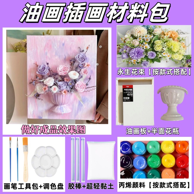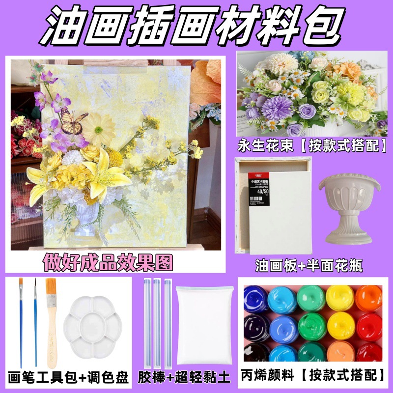 Классический материал для иллюстраций с фиолетовой масляной живописью; Классический материал для иллюстраций розовой масляной живописи; Классический материал для иллюстраций к картине маслом синего цвета; Светло-желтый материал для иллюстраций маслом; Светло-зеленый материал для иллюстраций маслом; Материалы для иллюстраций розовой масляной живописи; Розово-фиолетовые материалы для иллюстраций маслом; Материал для иллюстрации к золотисто-желтой картине маслом; Один пигмент + один кусочек консервированного цветка [за исключением других]