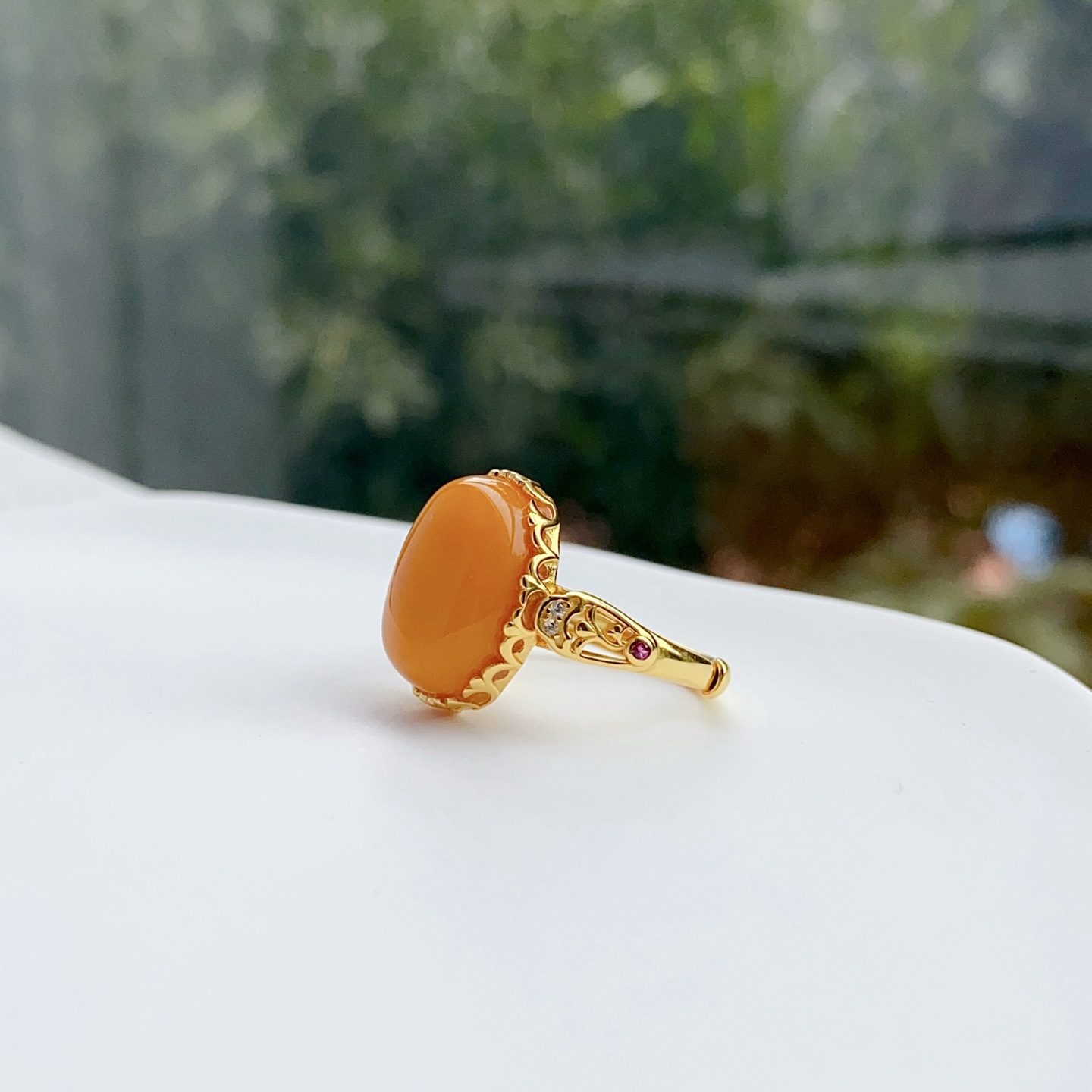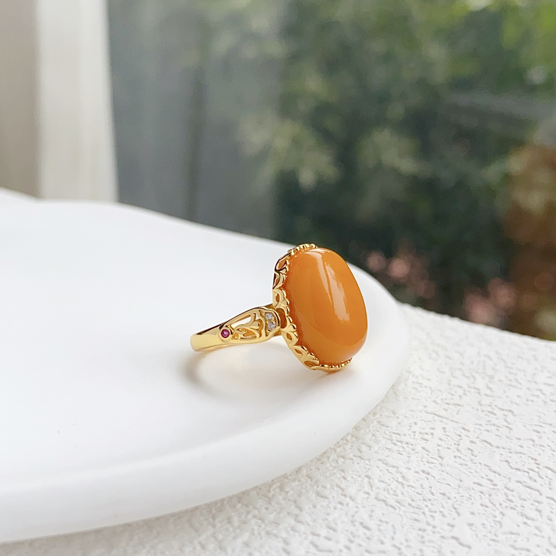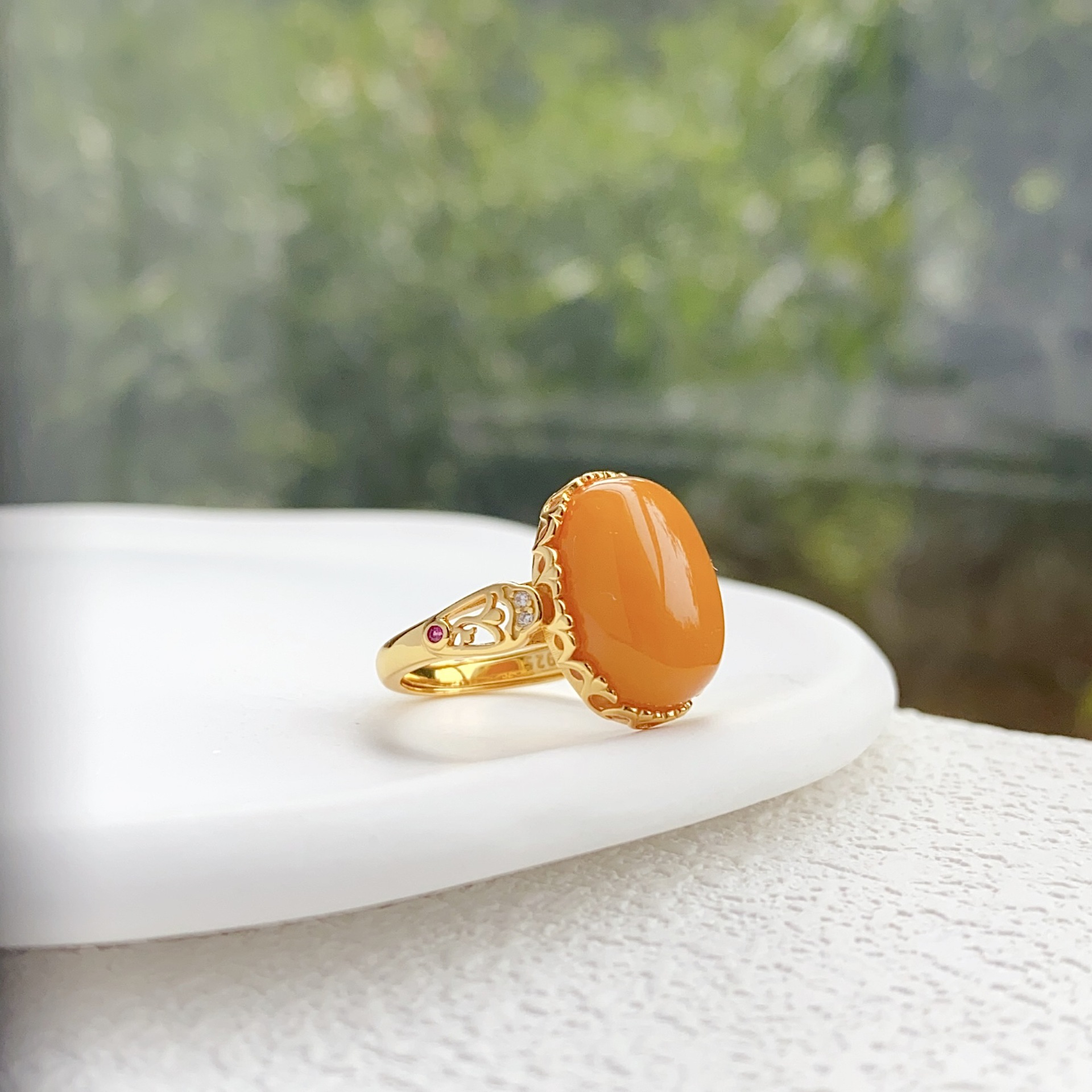 [S925 Серебро] Кольцо из натурального старого пчелиного воска - около 11*15 мм.