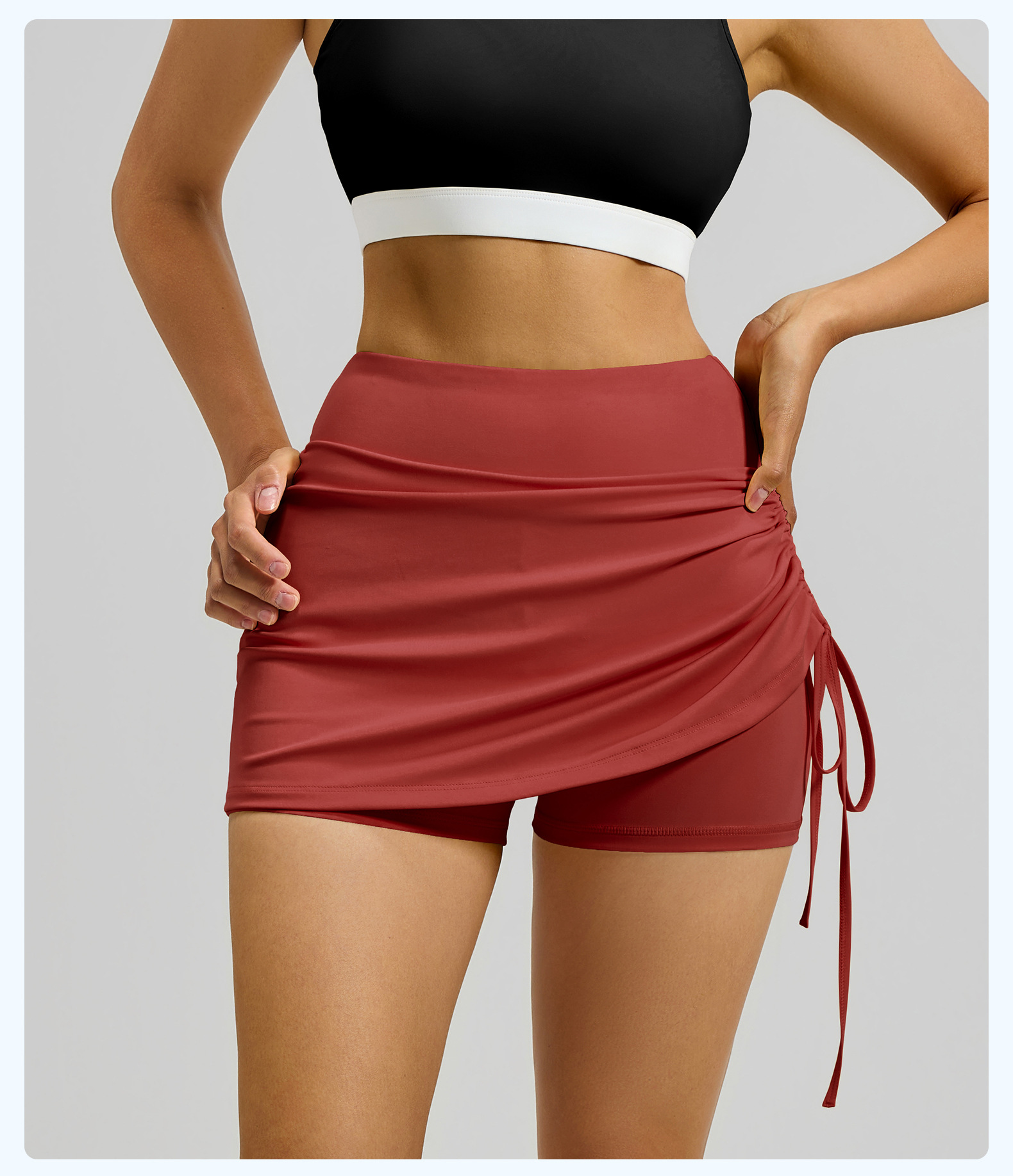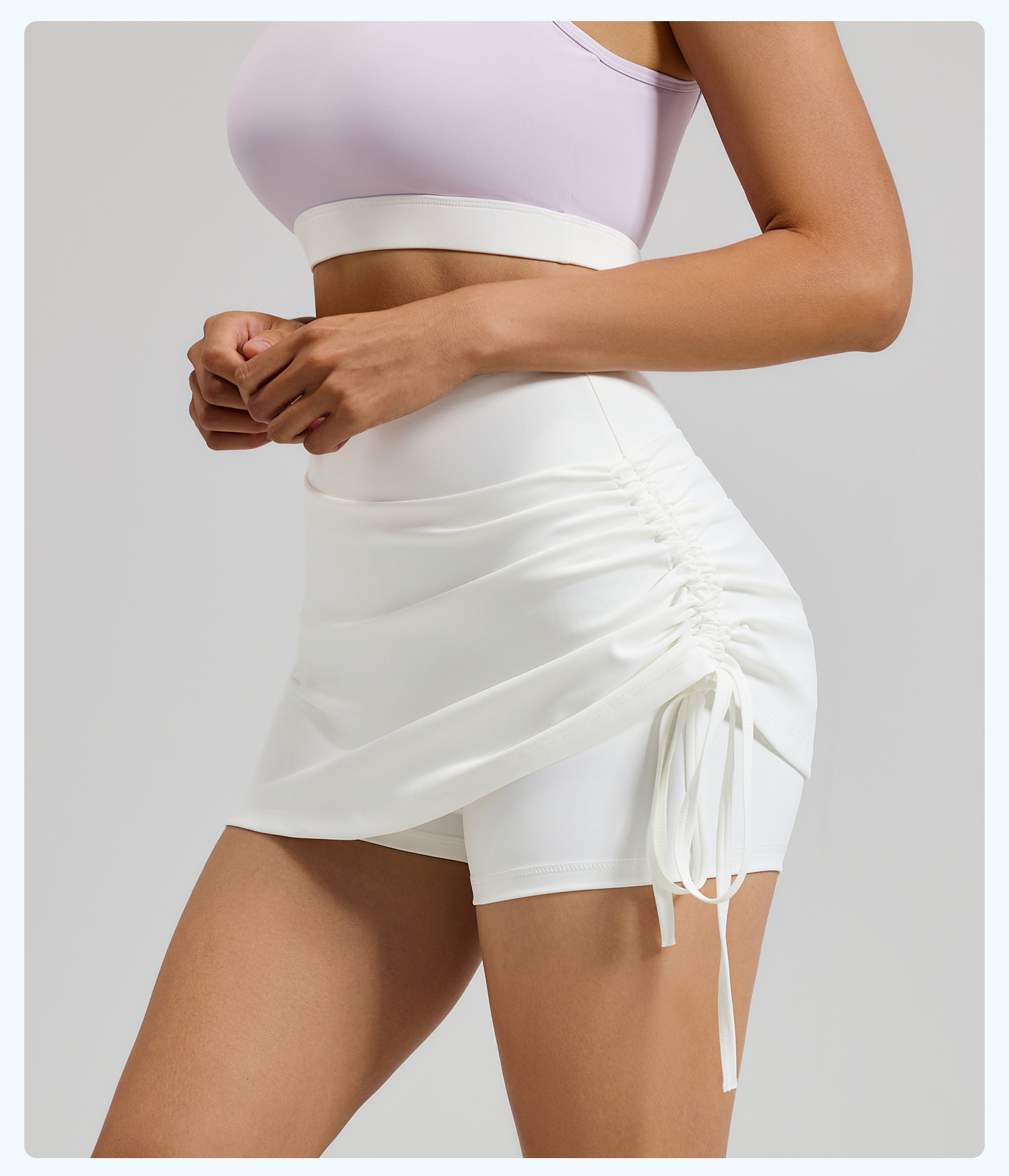 Новая морщинистая спортивная юбка Juyitang, женские короткие шорты для йоги с высокой талией и защитой от воздействия окружающей среды, состоящие из двух частей