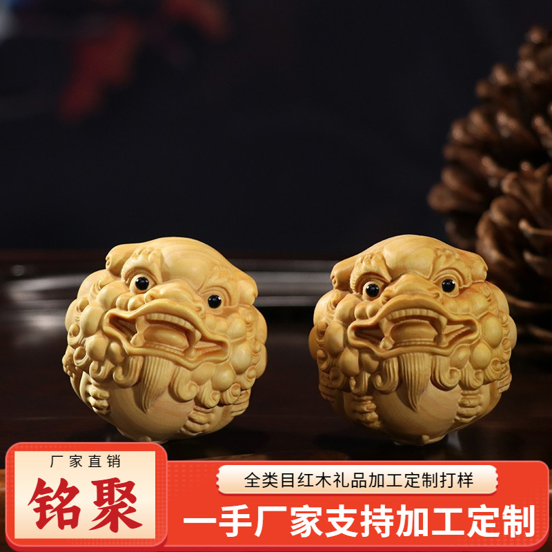 Резная голова льва из самшита Минцзю, пиксиу, массажер для рук из массива дерева, подарок для пожилых людей, ручной работы
