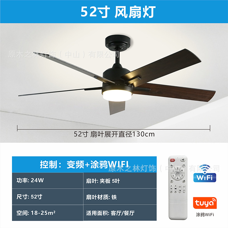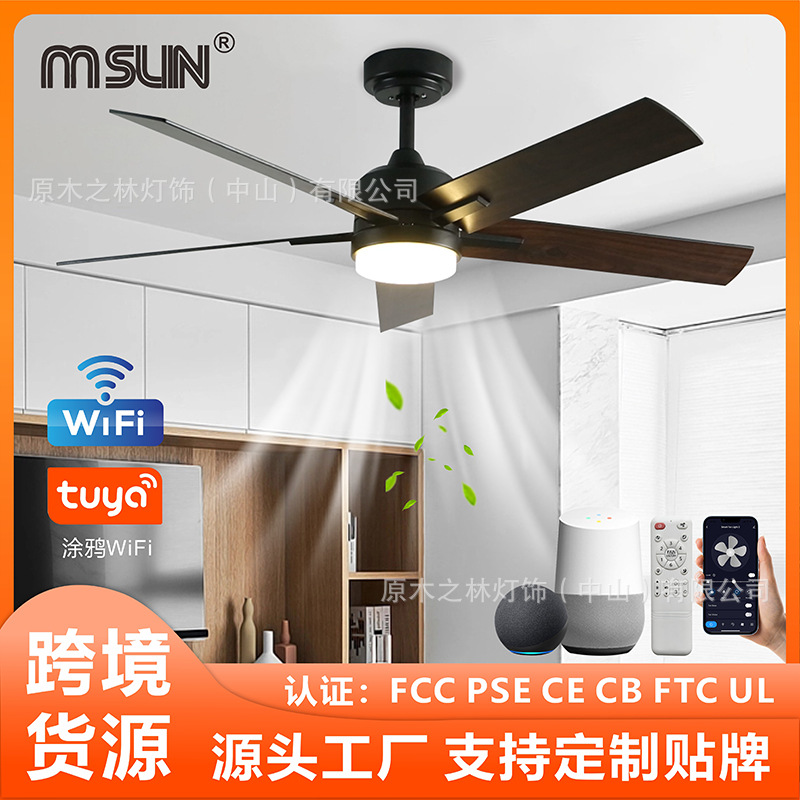 Трансграничный вентилятор с фиксированными лопастями, совместимый с Tuya WiFi, поддерживает Alexa, подходит для гостиной, столовой, спальни, домашнего светодиодного вентилятора.