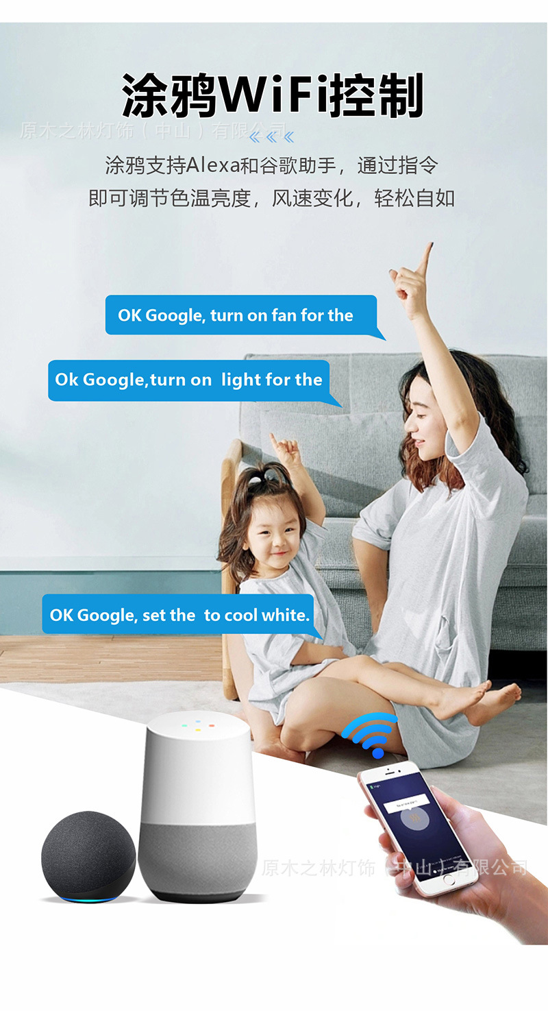 Преобразование частоты: три цвета + 6 передач + вперед и назад; Tuya WiFi: Обещание + 6 уровней + поддержка Alexa