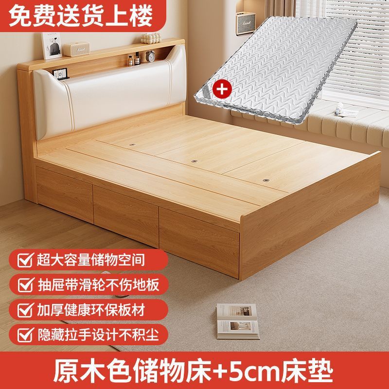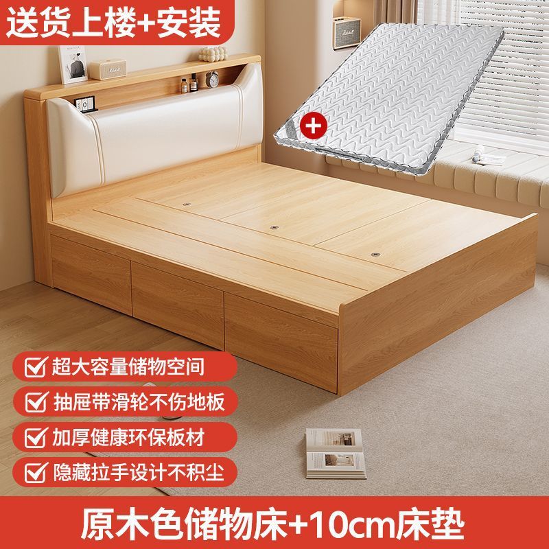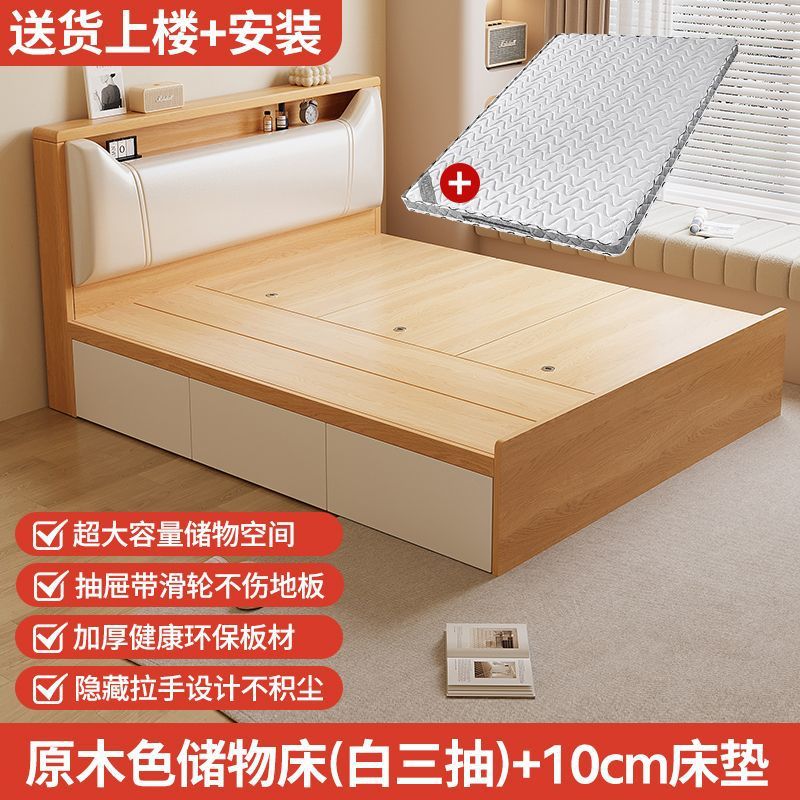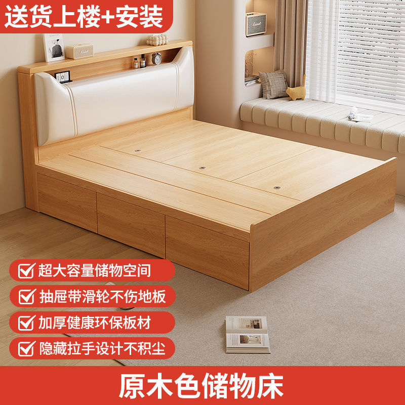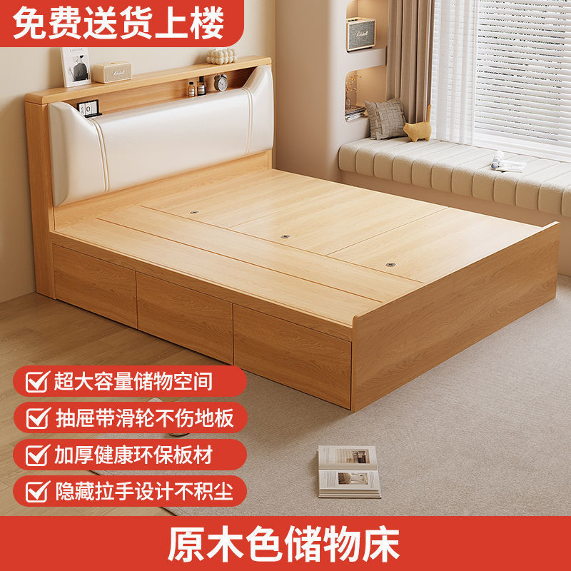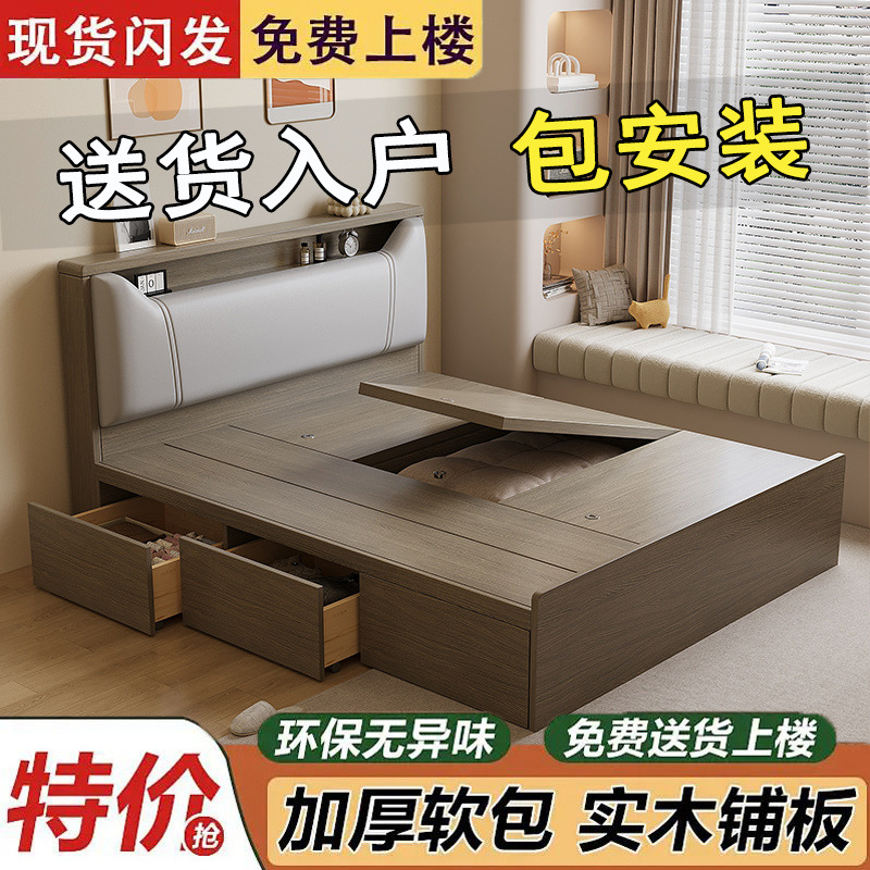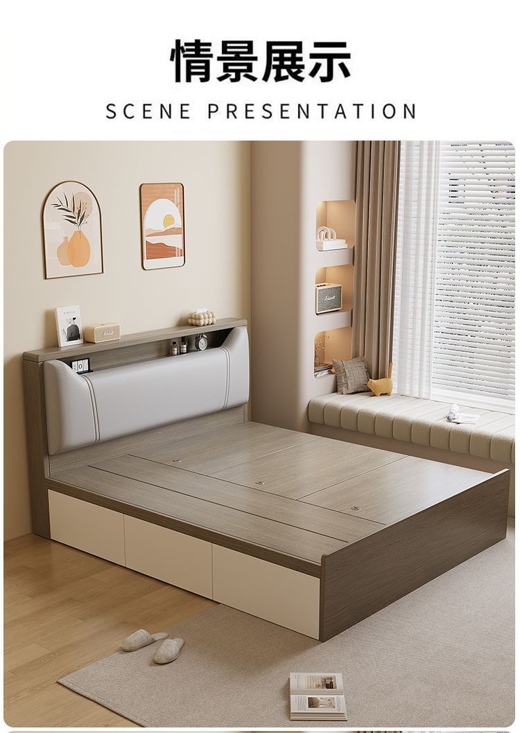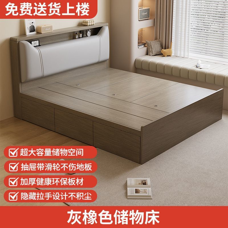 Кровать-татами с высоким ящиком для хранения, двуспальная кровать, современная простая кровать для хранения, односпальная кровать, кровать с ящиком для хранения для маленькой квартиры