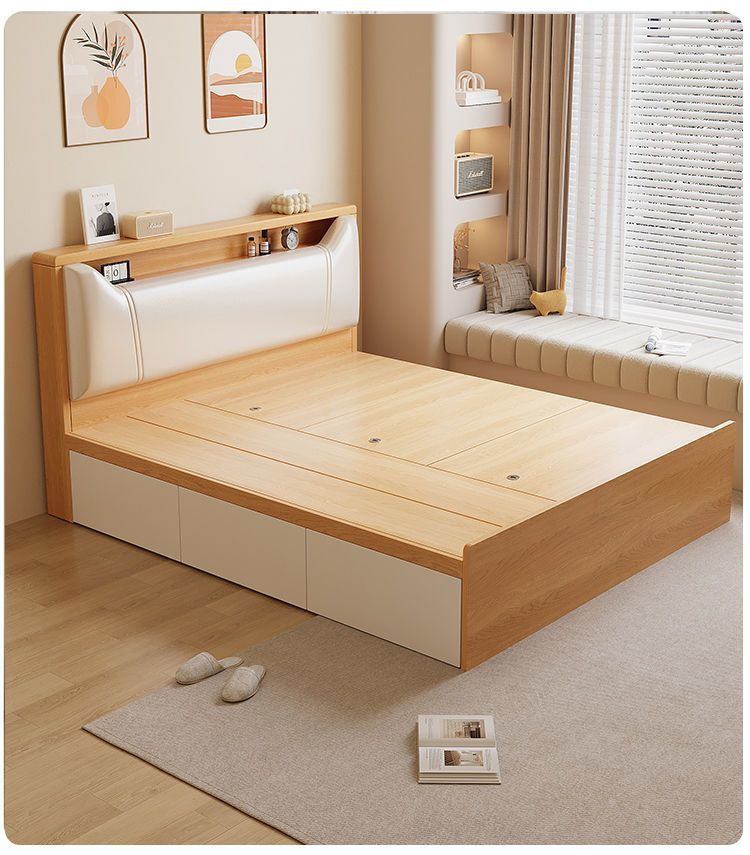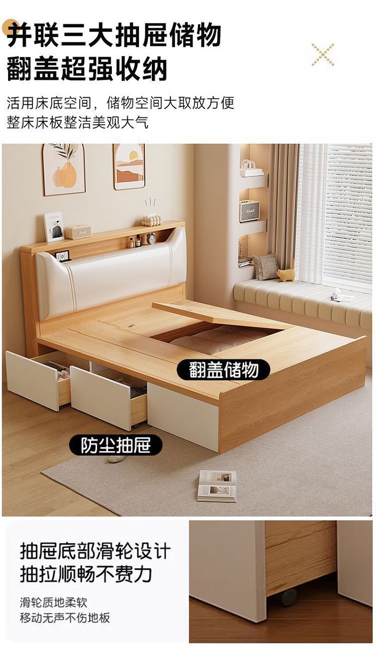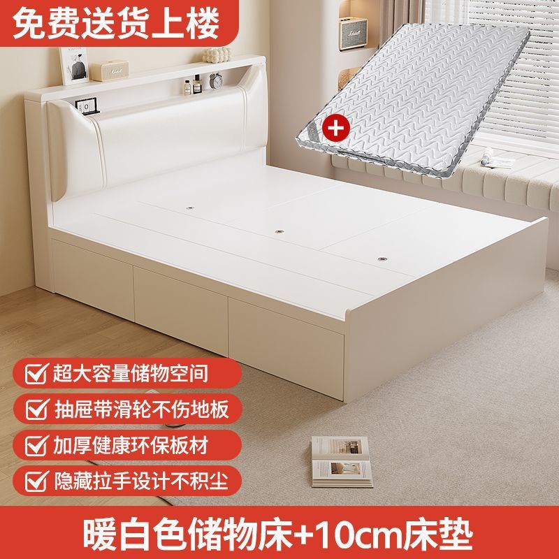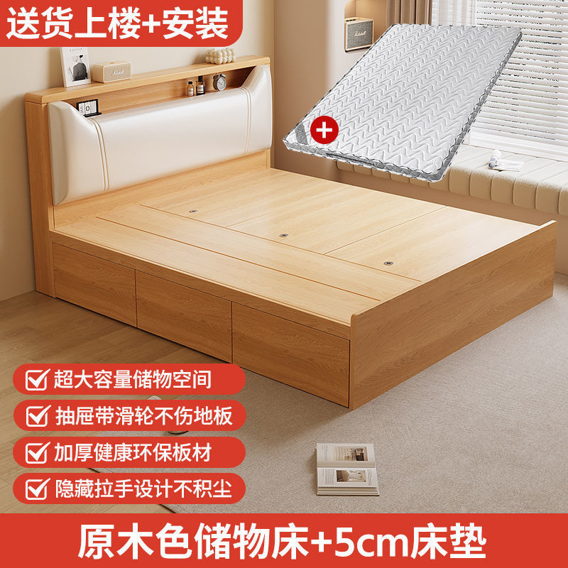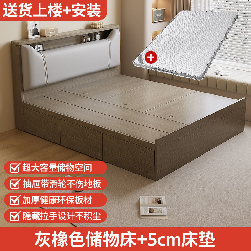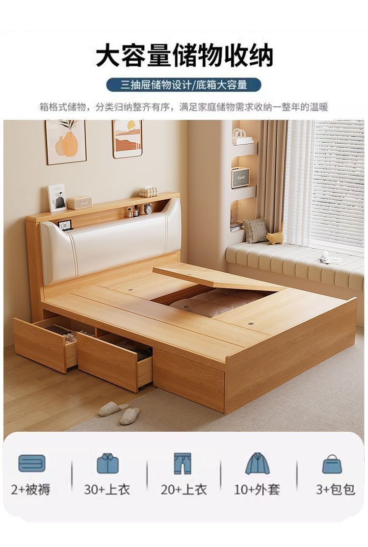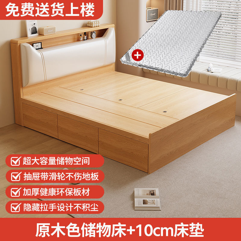 Кровать-татами с высоким ящиком для хранения, двуспальная кровать, современная простая кровать для хранения, односпальная кровать, кровать с ящиком для хранения для маленькой квартиры