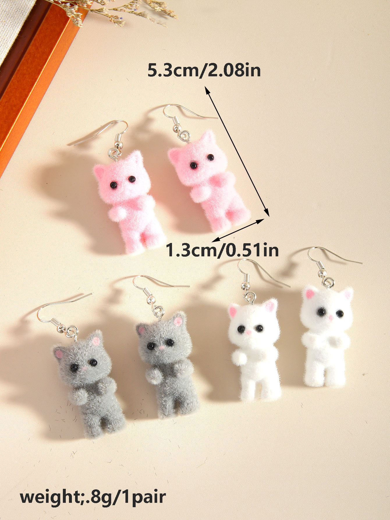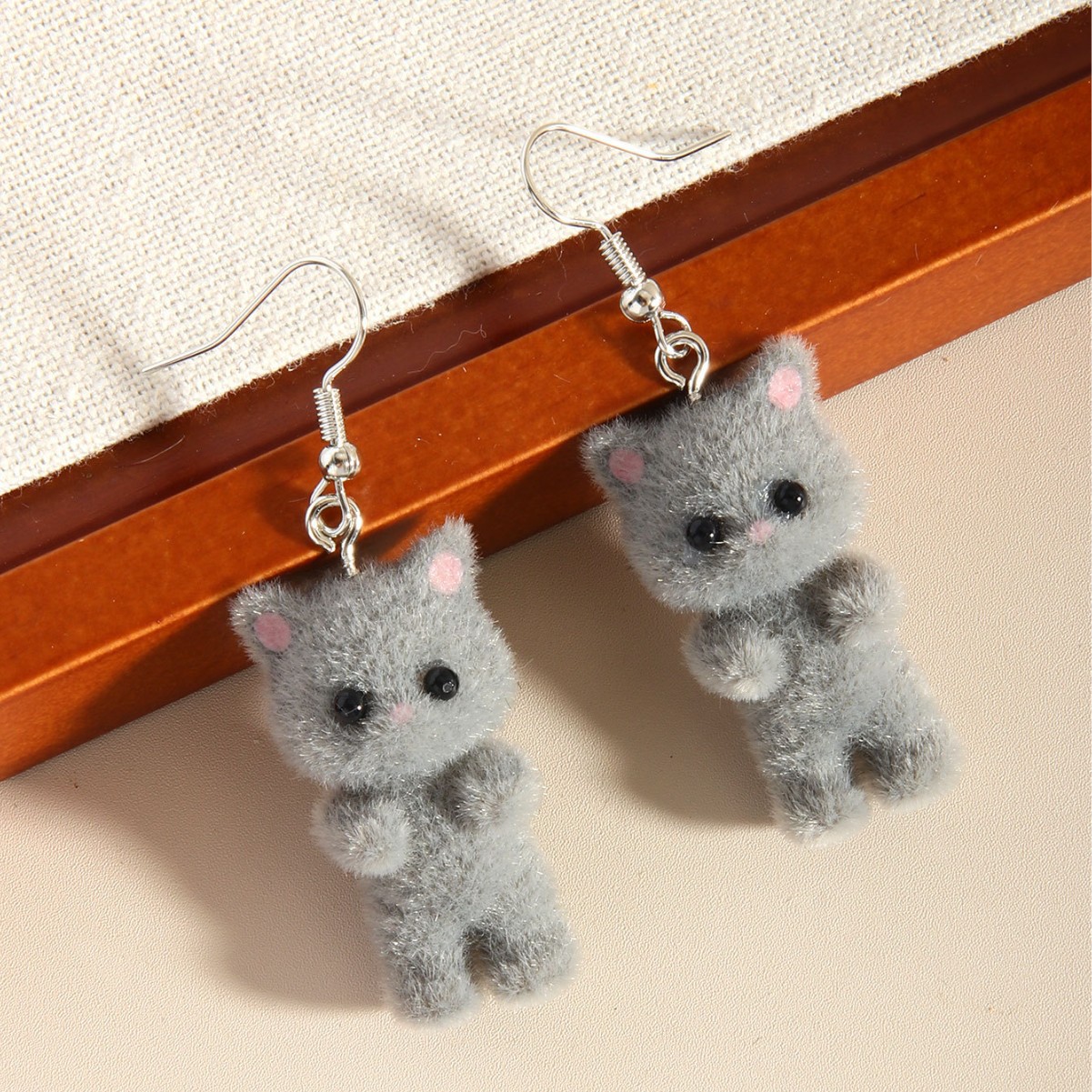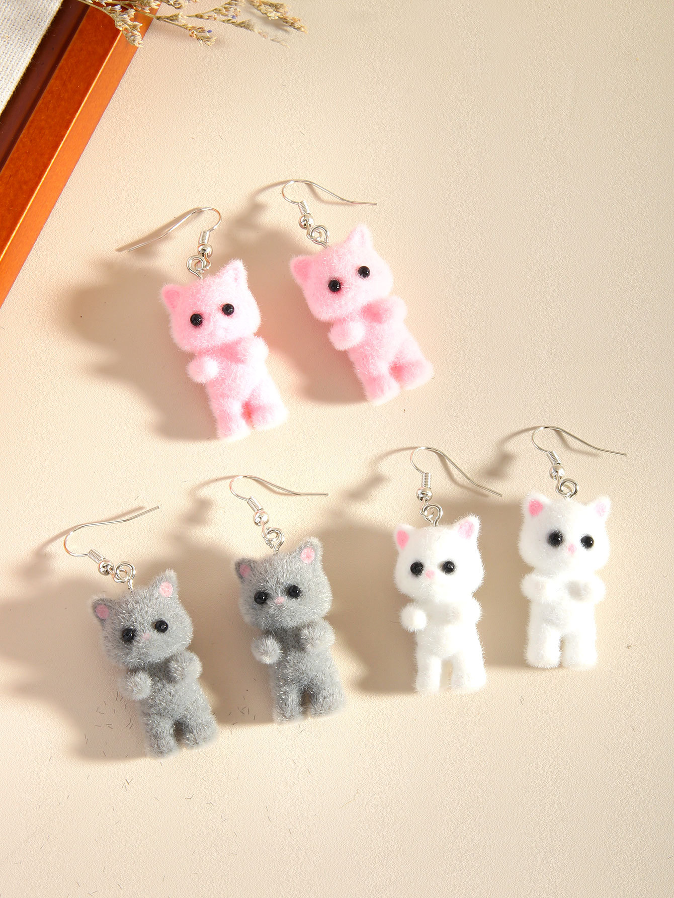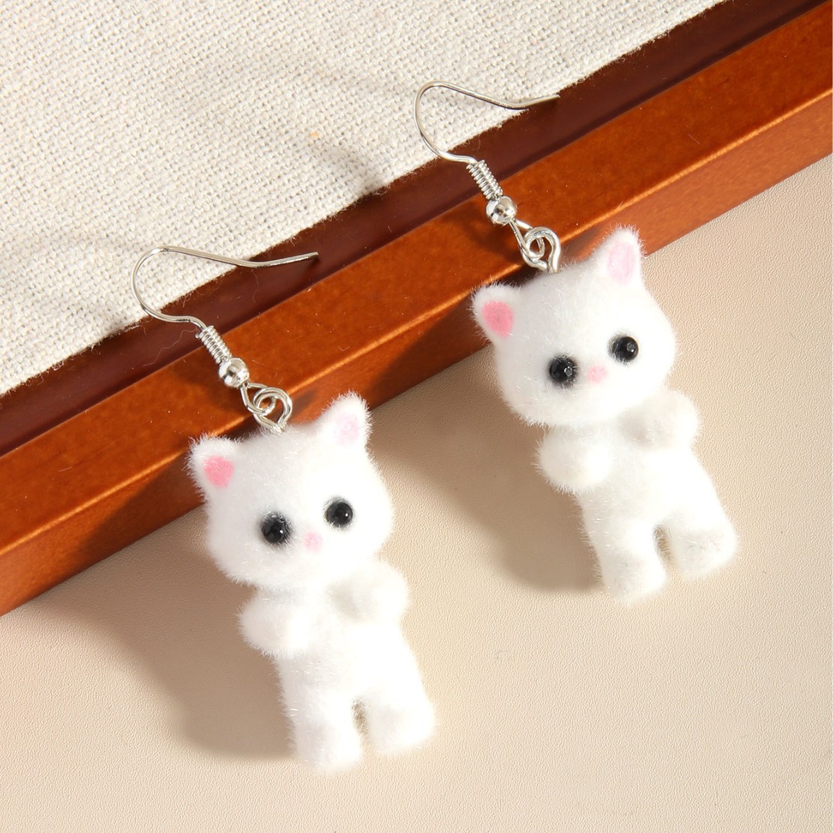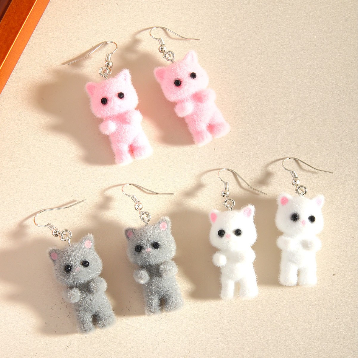 Трансграничные 3D стерео милые мультяшные флокированные серьги из смолы с изображением кота, модные милые, свежие, милые, простые аксессуары для женщин