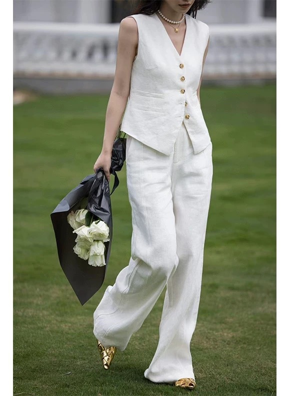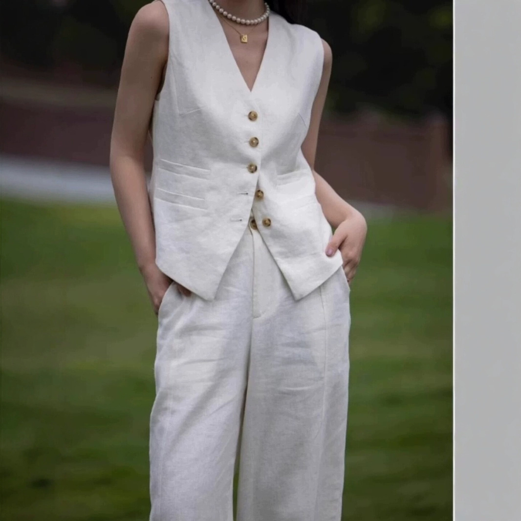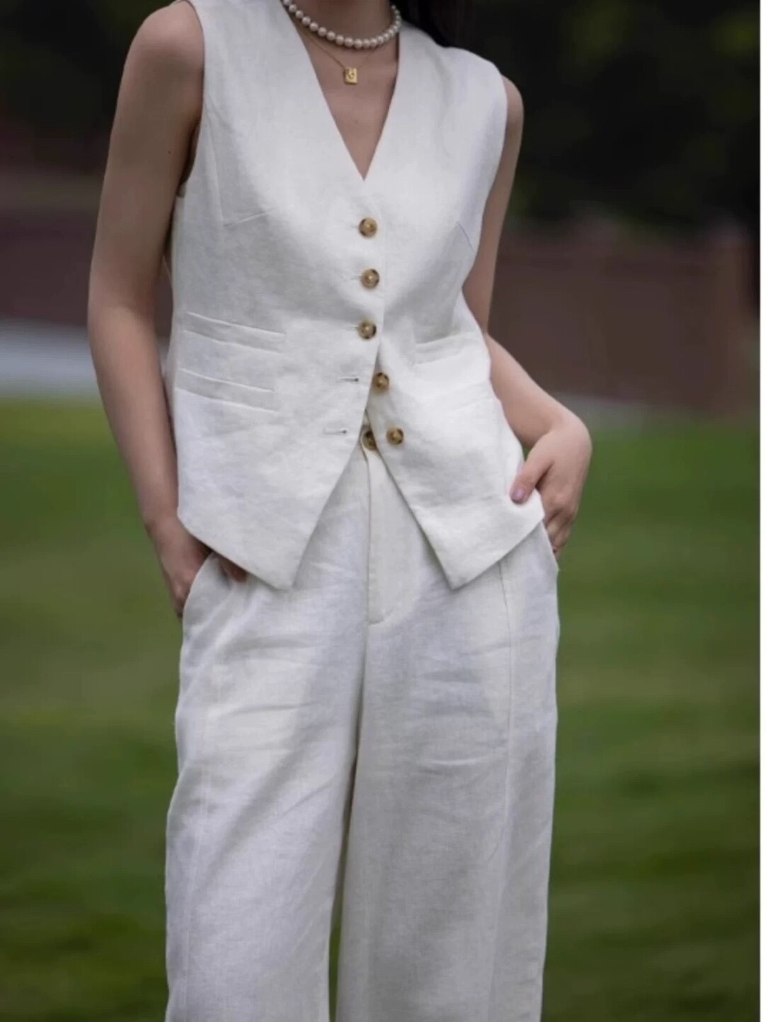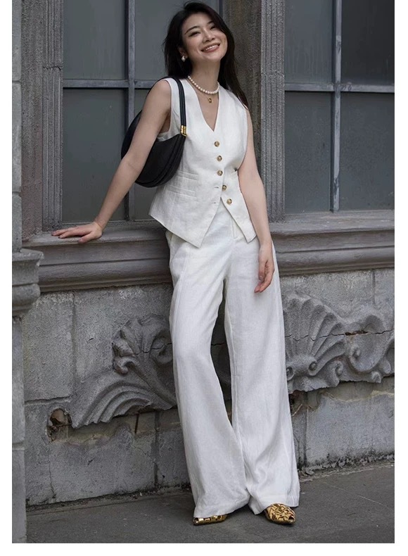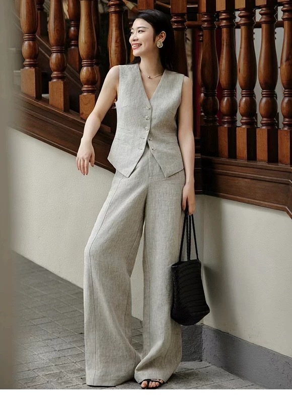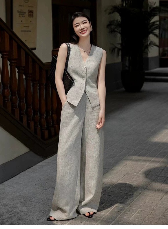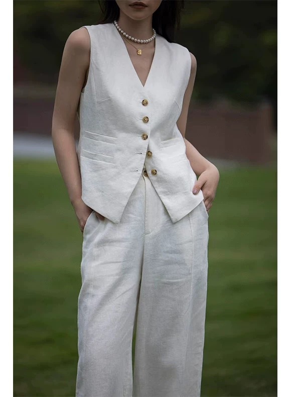 100 льняных жижей летняя тонкая ретро старый денежный ветер короткий костюм жилет женский V-образный вырез тонкий жилет куртка плеча