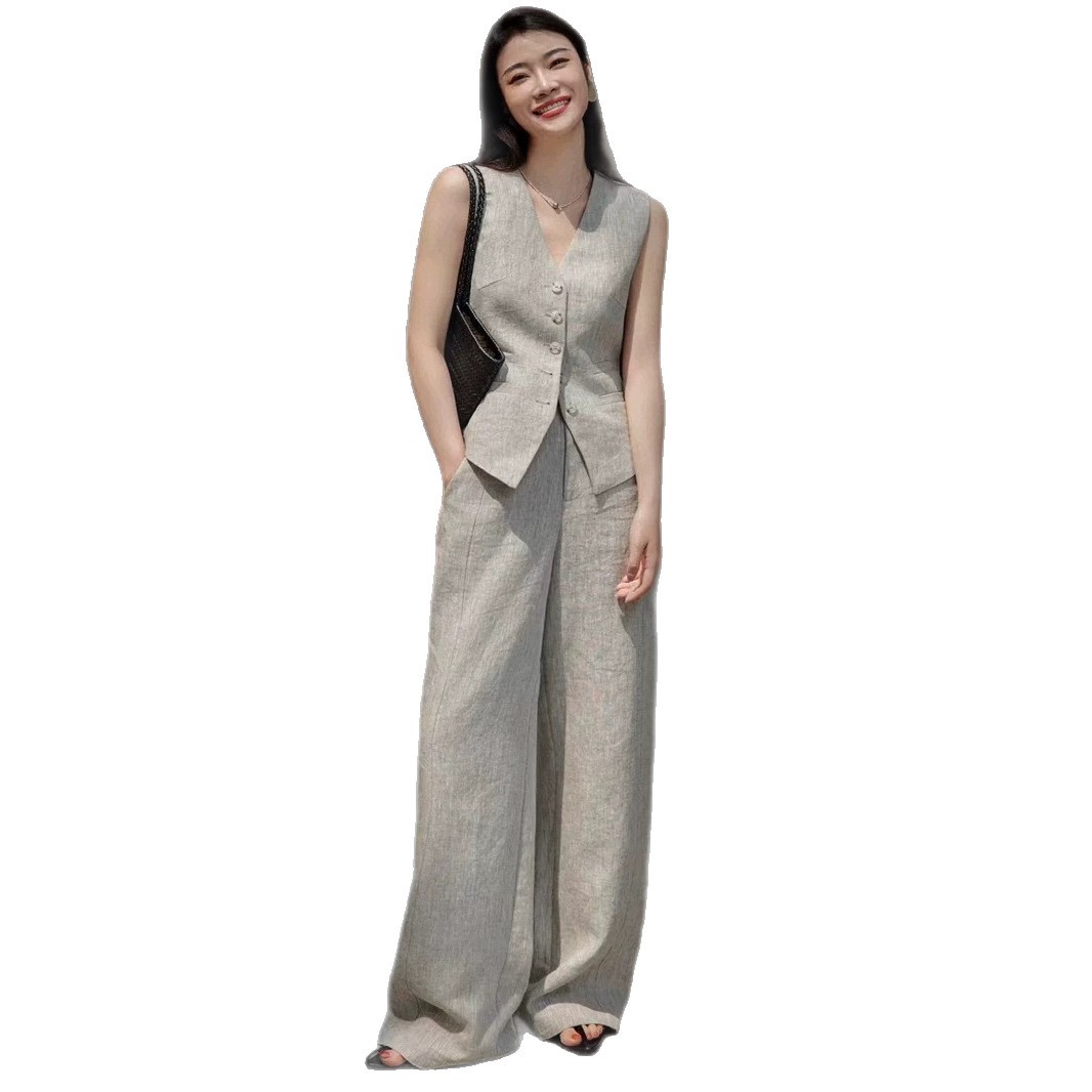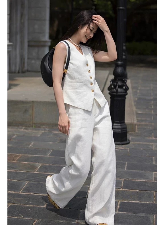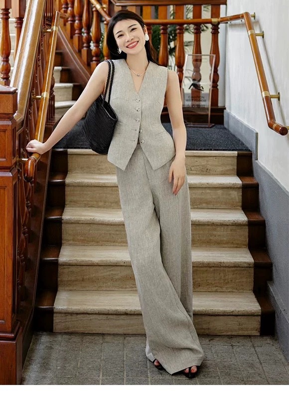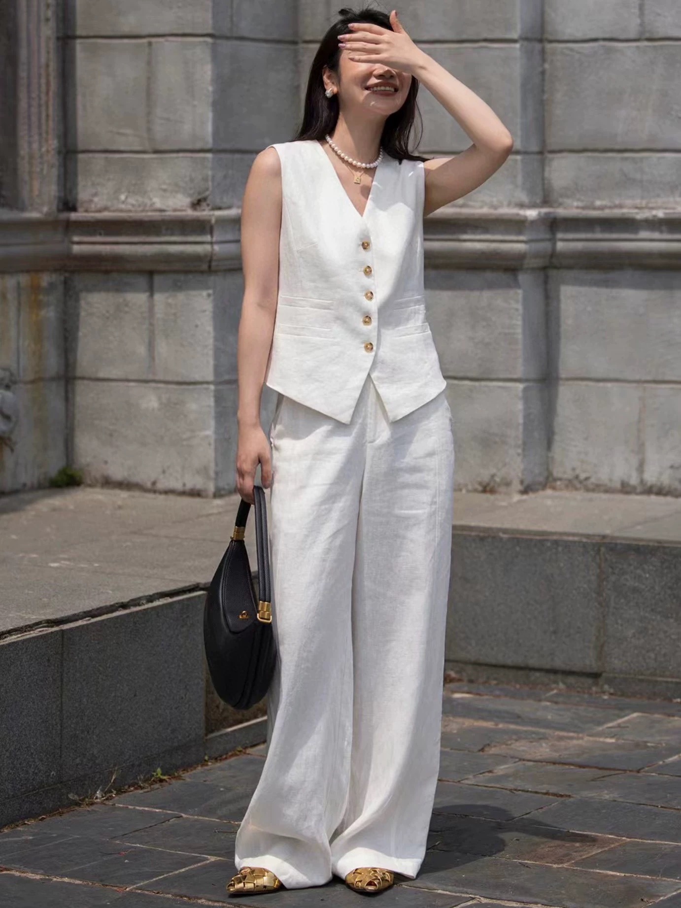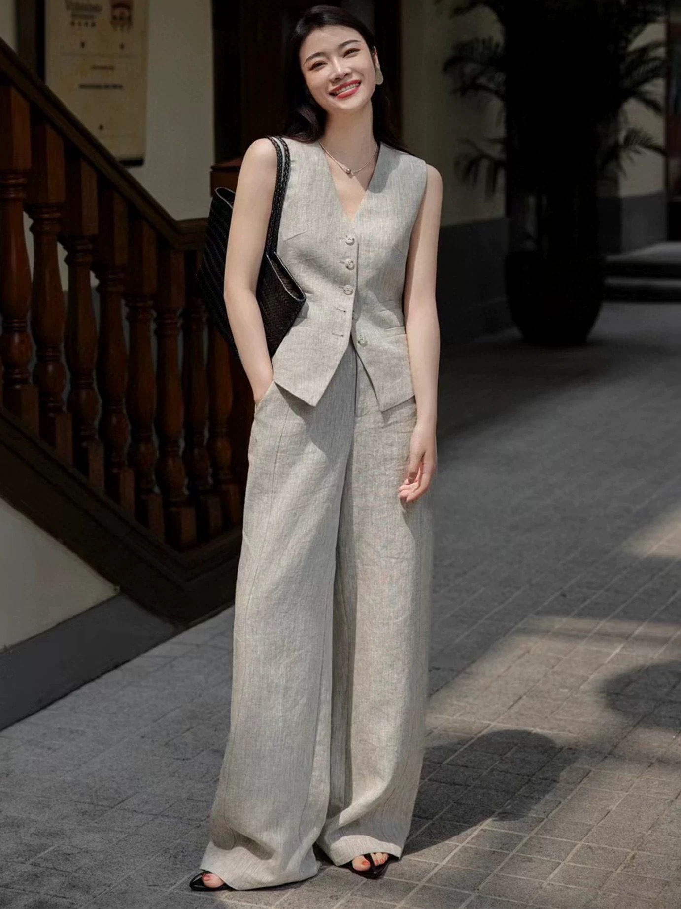 100 льняных жижей летняя тонкая ретро старый денежный ветер короткий костюм жилет женский V-образный вырез тонкий жилет куртка плеча