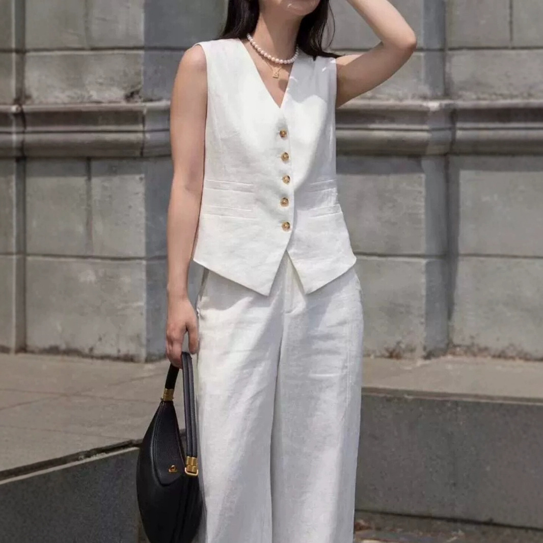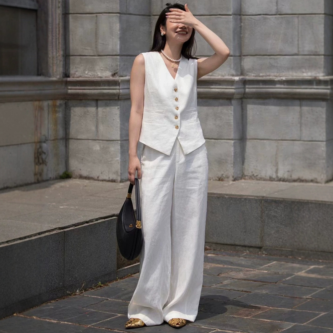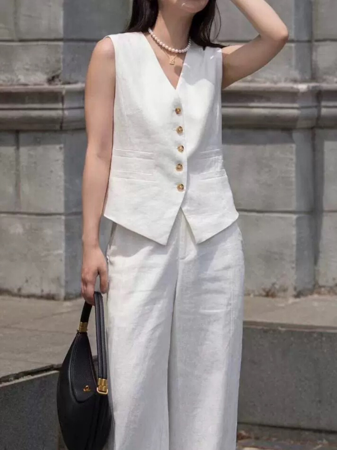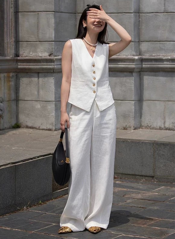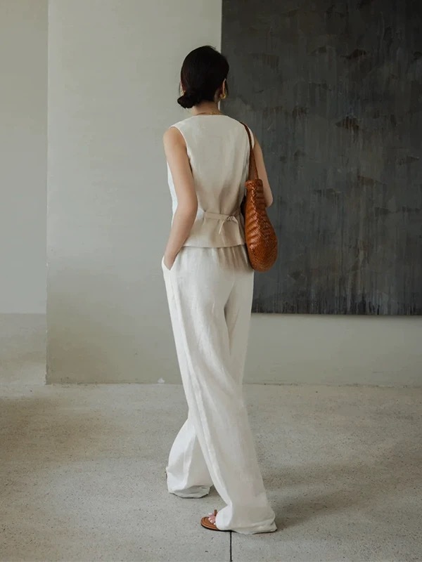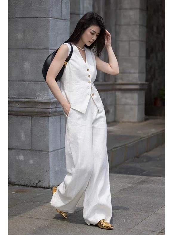 100 льняных жижей летняя тонкая ретро старый денежный ветер короткий костюм жилет женский V-образный вырез тонкий жилет куртка плеча