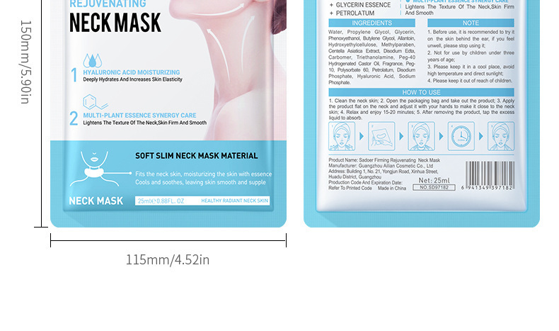SADOER Укрепляющая и омолаживающая маска для шеи Маска для шеи Лифтинг, укрепление и уменьшение линий шеи Маска для шеи Средства по уходу за кожей Трансграничные
