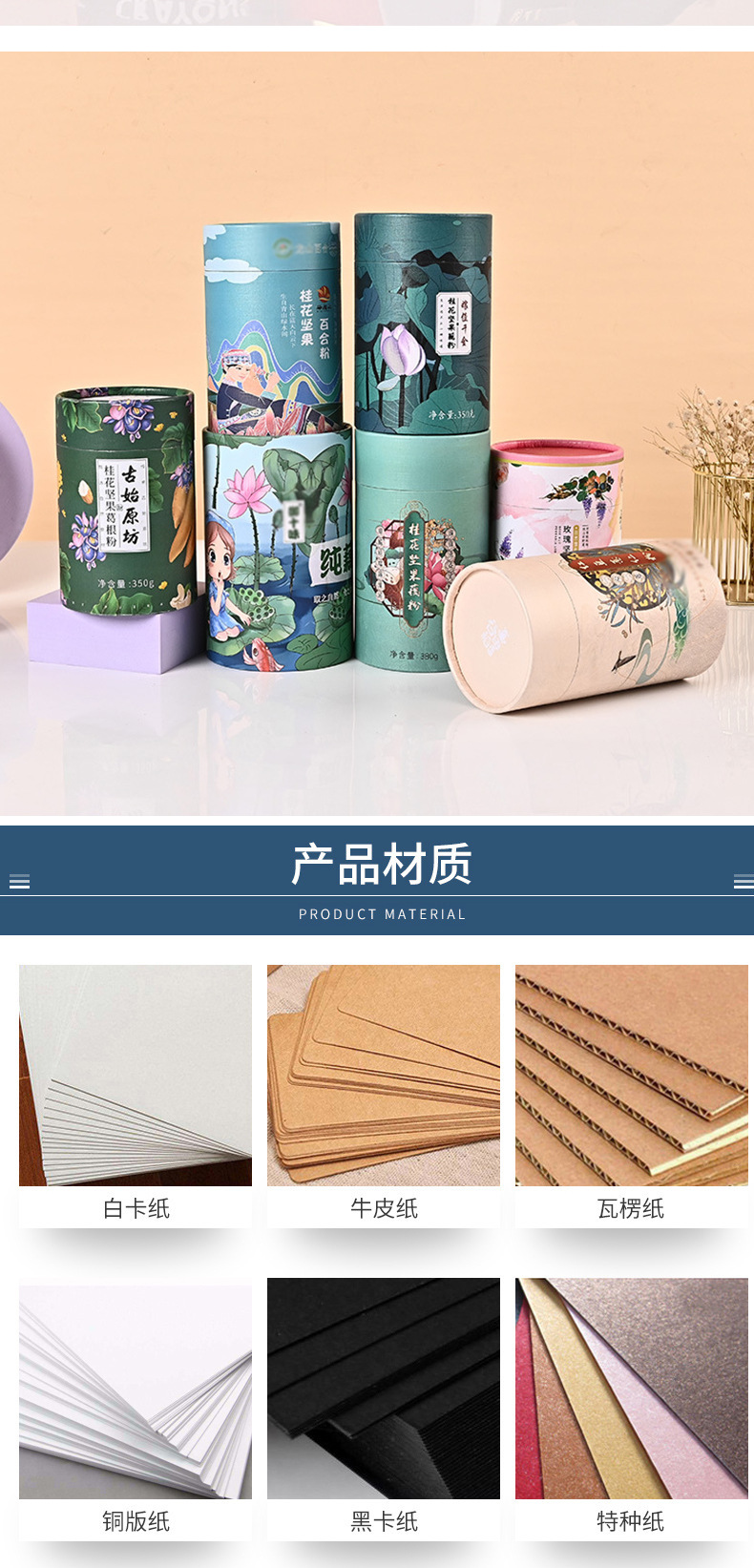 Трансграничная поставка бумажных банок, крафт-бумажных трубок по индивидуальному заказу, порошка корня лотоса, бумажных банок для чая, круглых упаковочных коробок, косметических бумажных трубок.