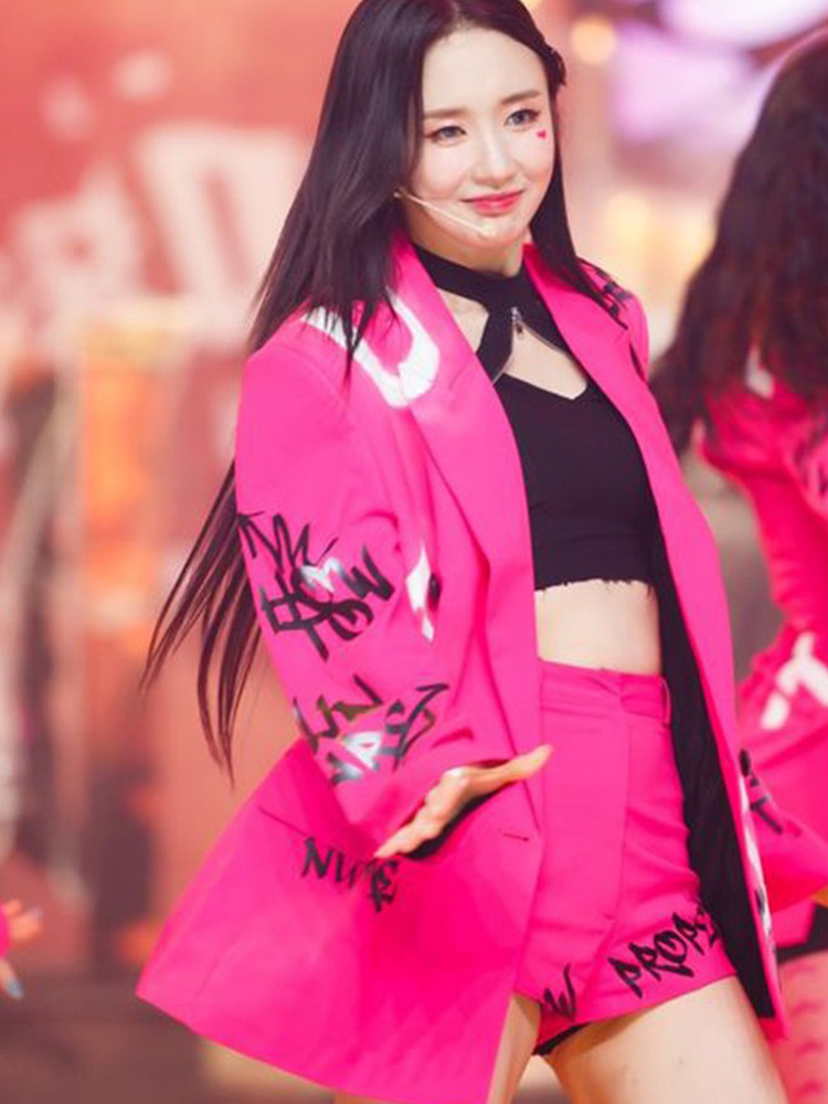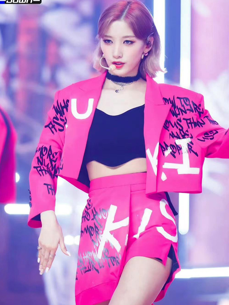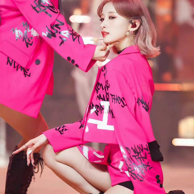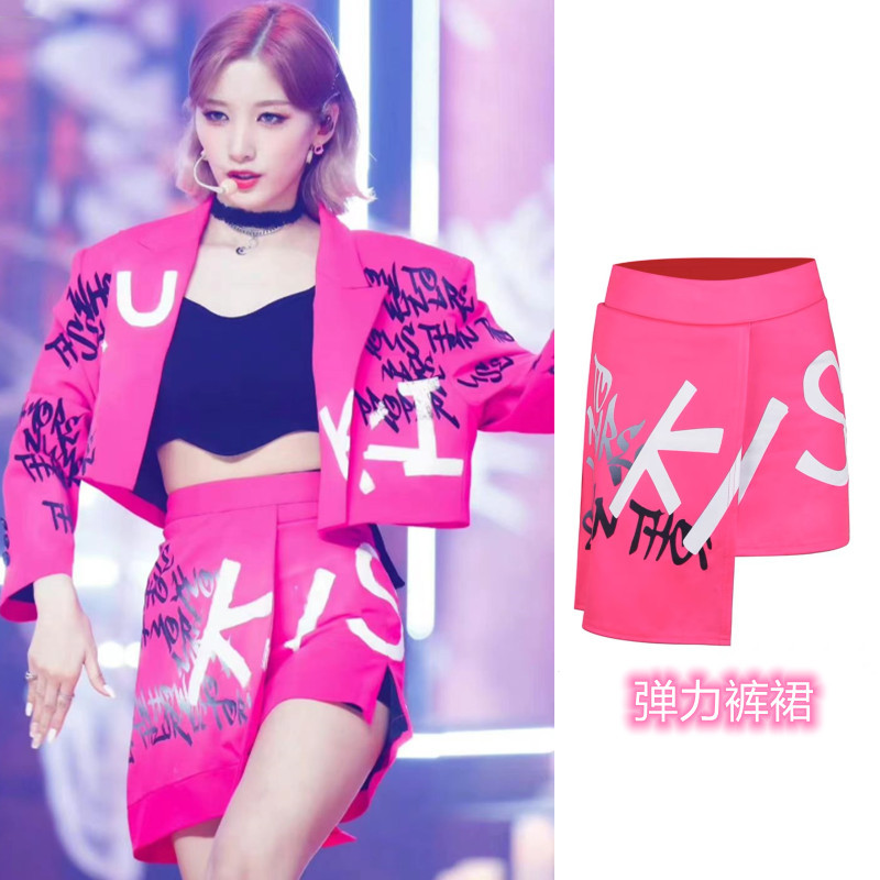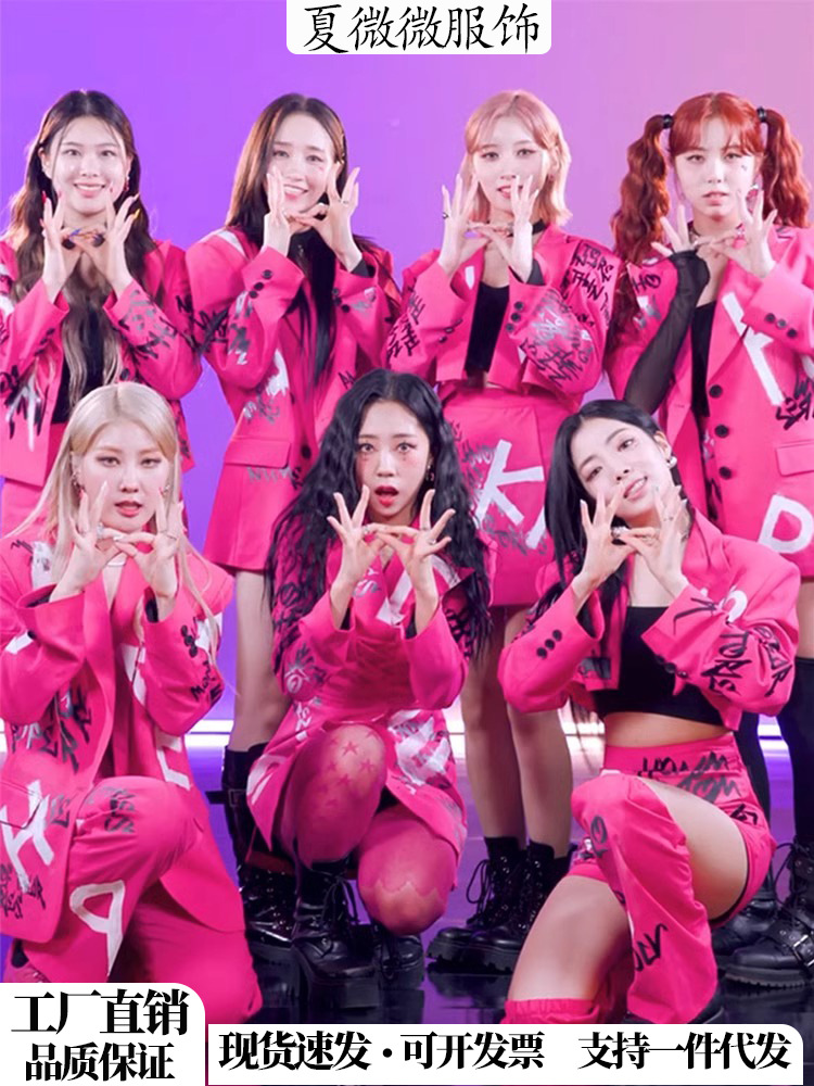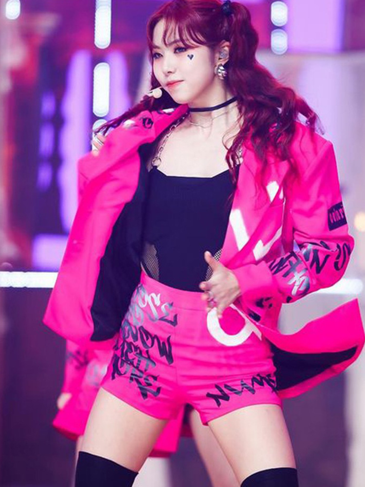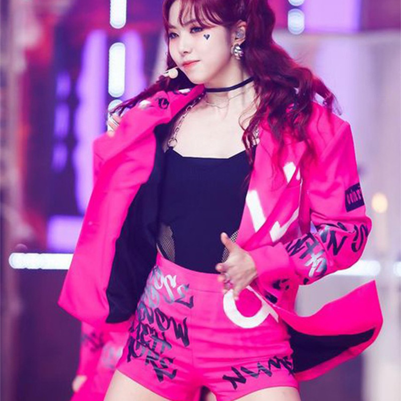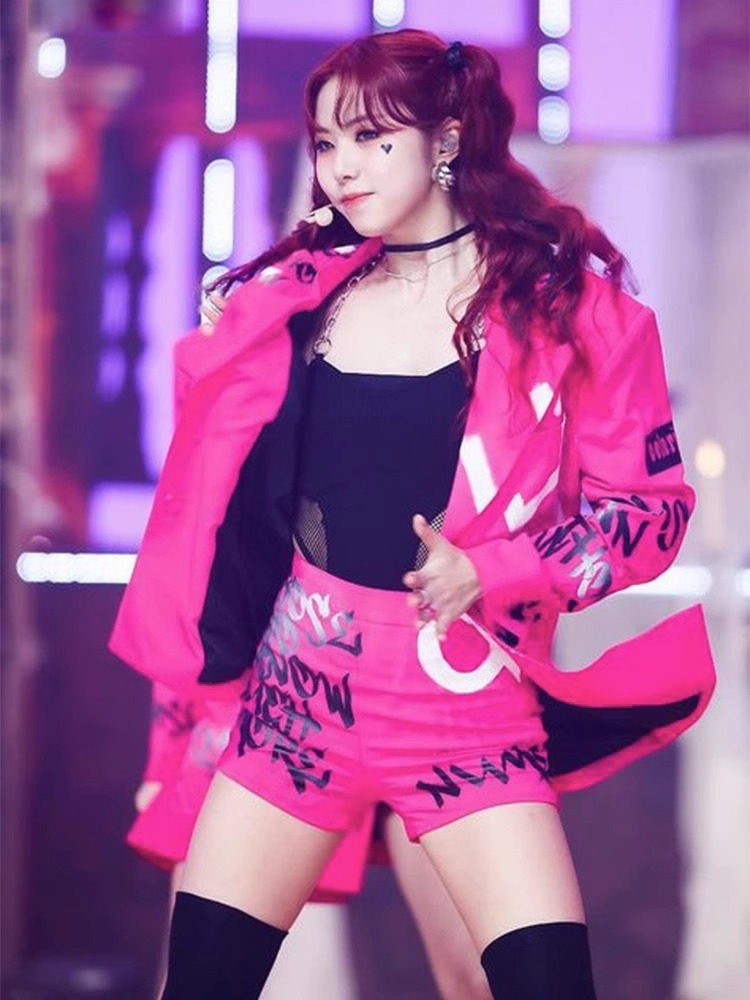 Костюм для выступления в стиле розово-красного цвета для девушек в стиле K-pop, костюм для джазовых танцев, мини-костюм для сцены, сексуальный костюм для хип-хопа для женщин