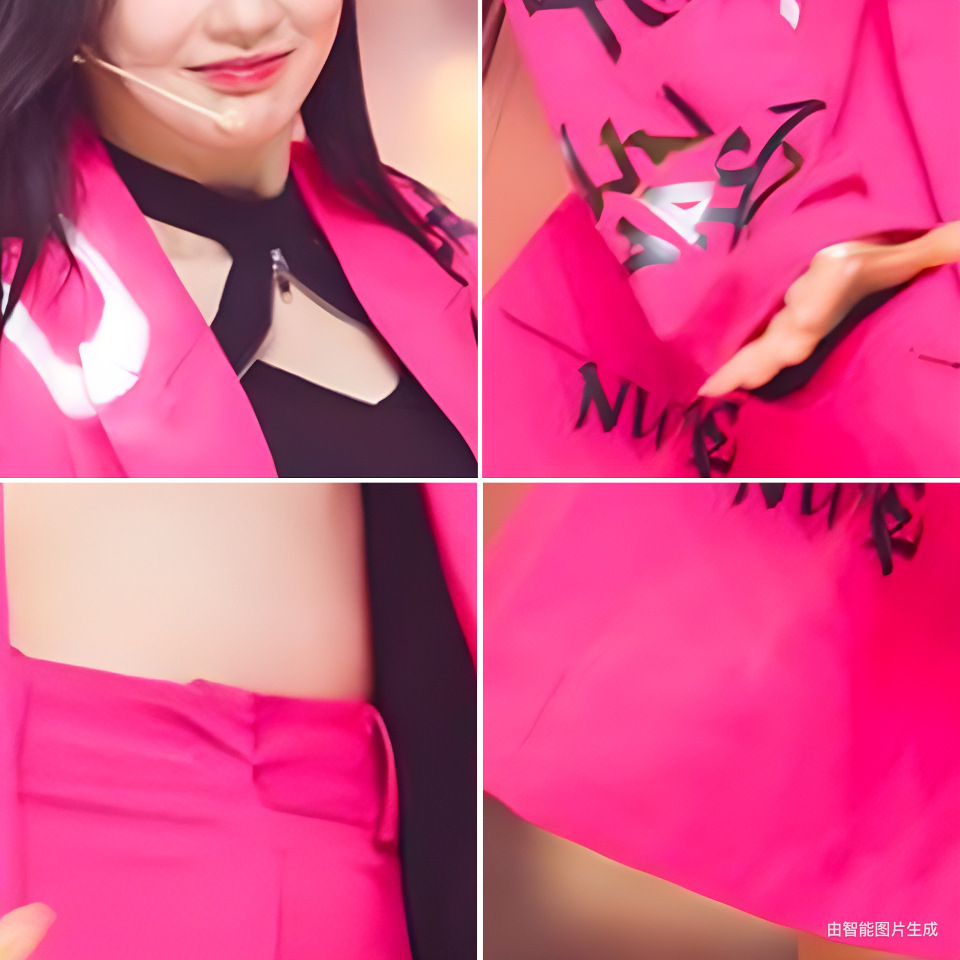 Розово-красное длинное пальто; Короткая куртка розово-красного цвета; розово-красные брюки; Розово-красная юбка; розово-красные шорты; Короткий костюм (короткая куртка + короткая юбка); Короткий костюм (короткая верхняя одежда+шорты); LongSuit (Длинная верхняя одежда+брюки)