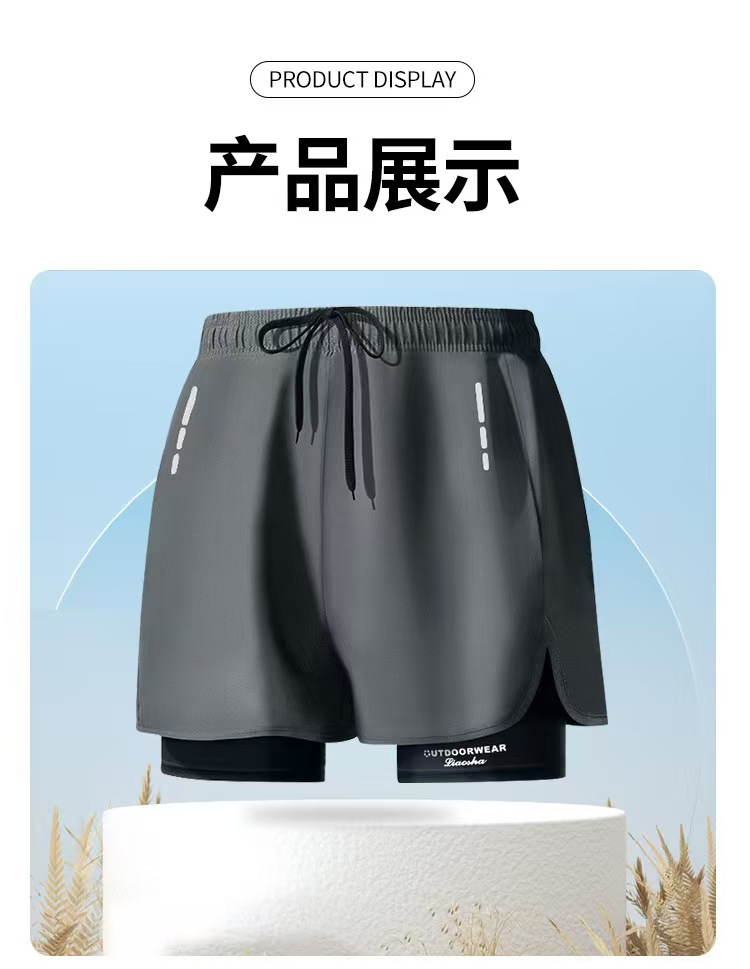 Мужские плавки Amazon, оптовая продажа, быстросохнущие, для тренировок по бегу, трансграничный пляж, европейские и американские женские мужские двухслойные, с защитой от сборки