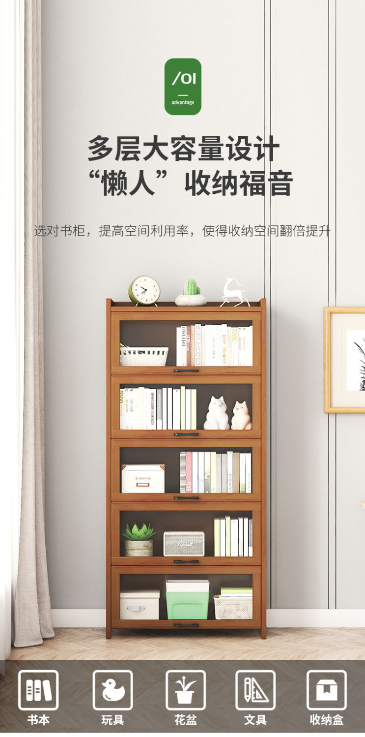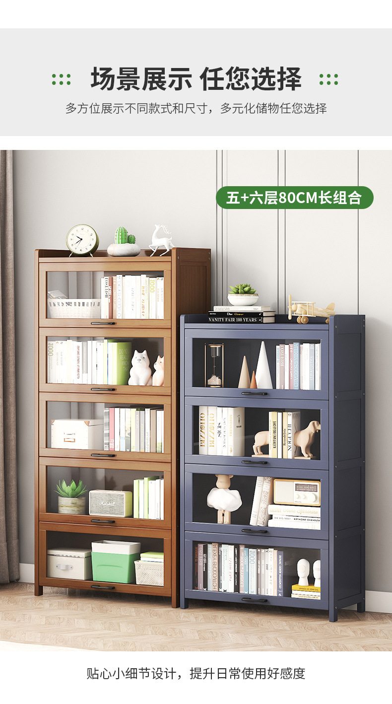 Книжный шкаф с дверцей, книжная полка, напольная студенческая многослойная стойка для хранения, бытовая простая компактная пылезащитная кухонная стойка для хранения
