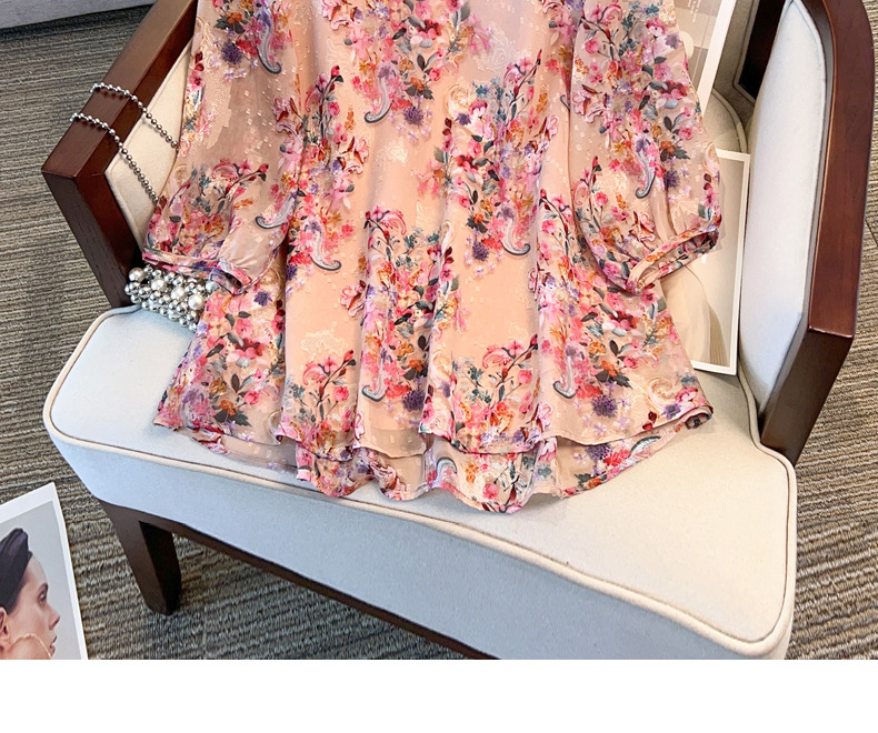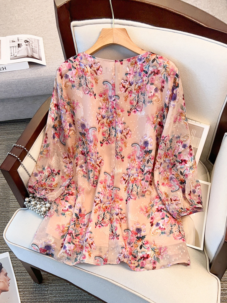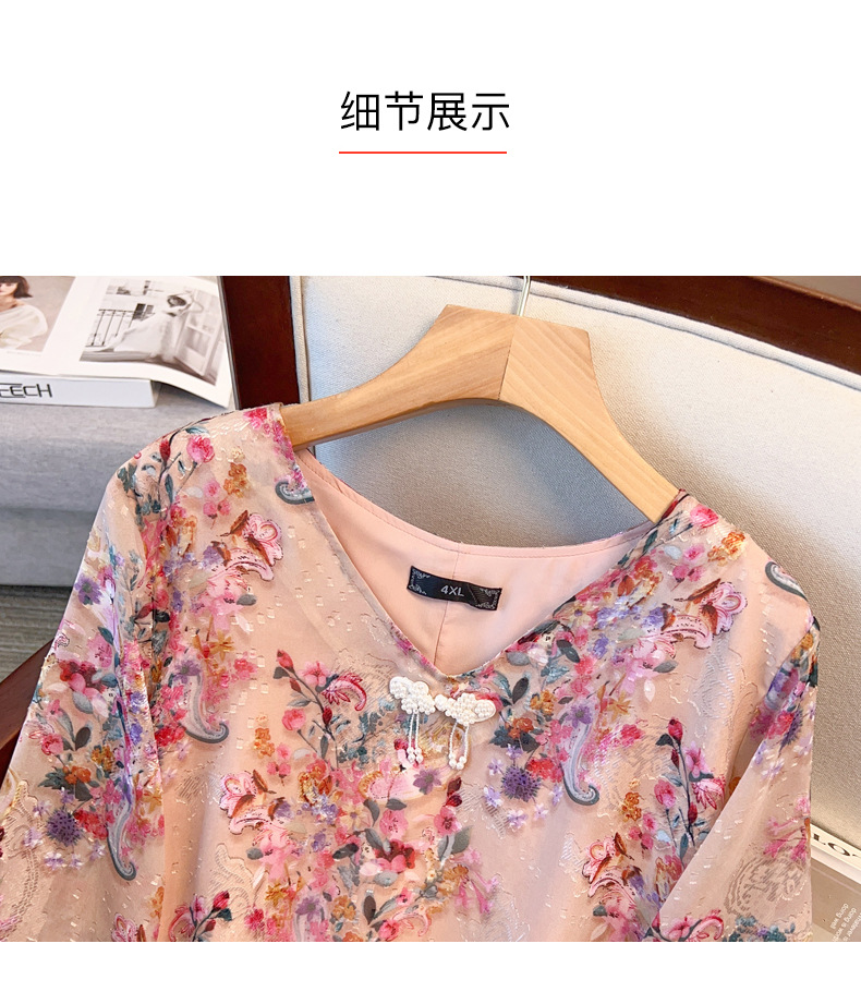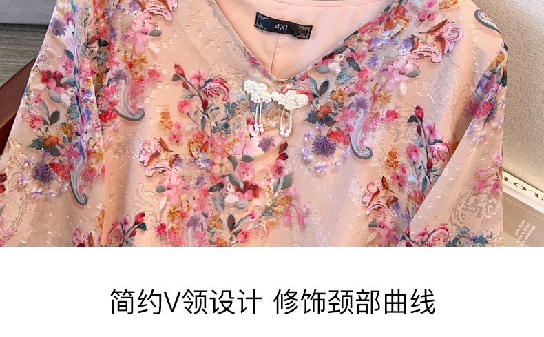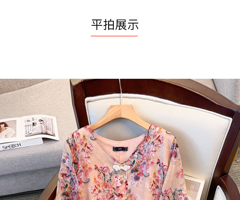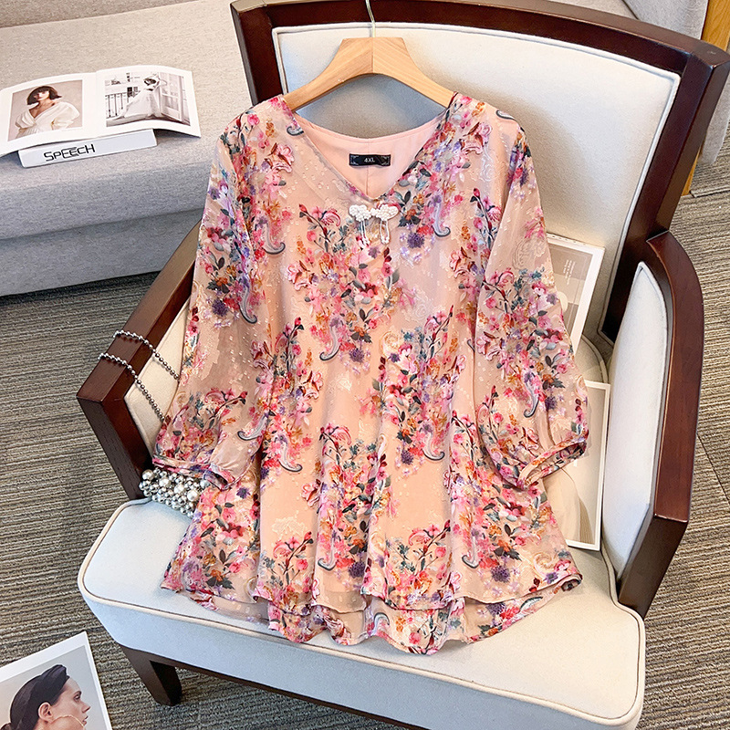 Шофон с рукавом из семи точек, толстый мм, тонкий плюс размер, женский летний свободный, с V-образным вырезом, топ 24533T