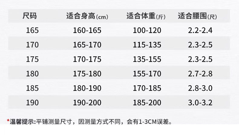 Код M165 (подходит для 45-55kg ); Размер L170 (подходит для 55-65kg лет); Код XL175 (подходит для 65-75kg ); 2XL180 (подходит для 75-85kg человек); 3XL185 (подходит для 85-95kg человек); 4XL190 (подходит для 95-105kg человек)