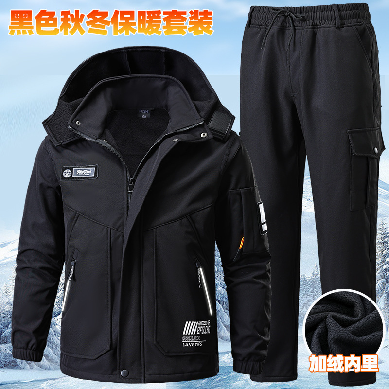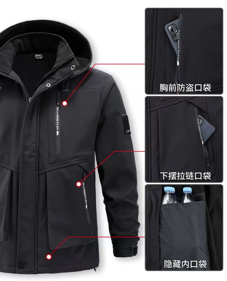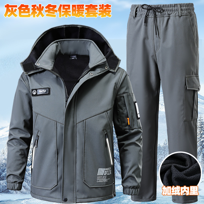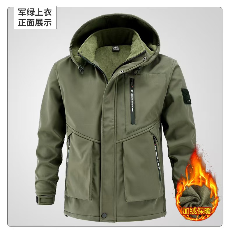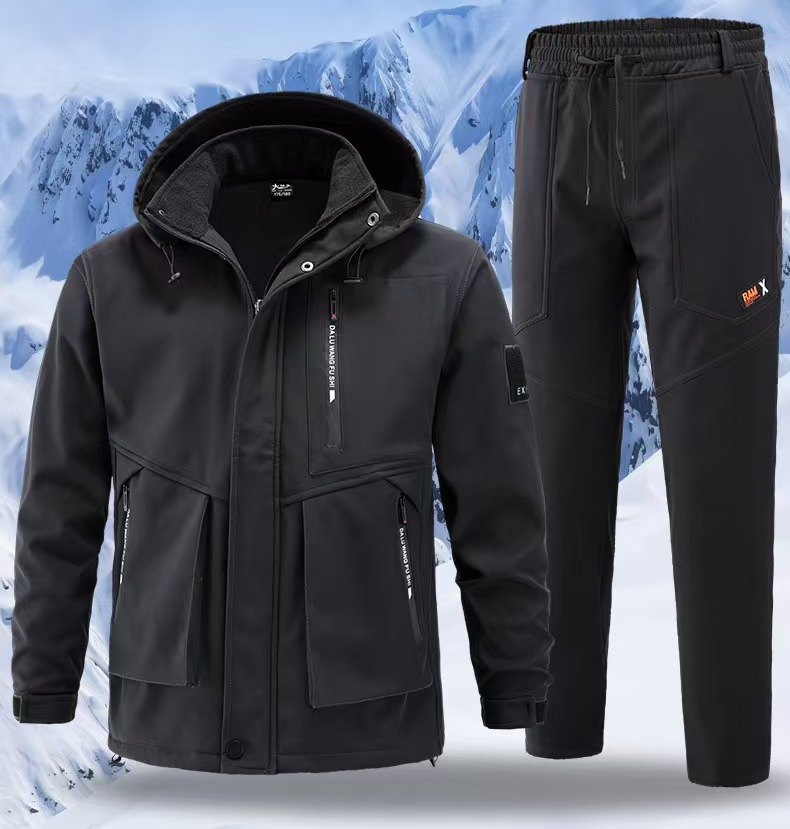 Плюшевая куртка мужской осенью и зимой водонепроницаемый, ветрозащитный и морозостойкий наружный теплый костюм