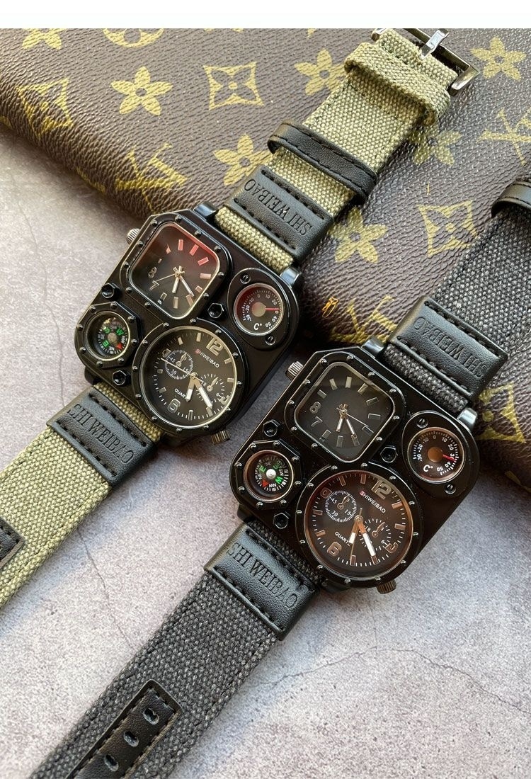 Новый камуфляжный холщовый ремень (бесплатная запасная электроника); Модернизированная версия с черным поясом и коричневой поверхностью (бесплатная запасная электроника); Модернизированная версия с зеленым поясом и коричневой поверхностью (бесплатная запасная электроника); Модернизированная версия черного пояса с белой поверхностью (бесплатная запасная электроника); Модернизированная версия с темно-коричневым циферблатом и черным поясом (бесплатная запасная электроника); Модернизированная версия с темно-коричневым циферблатом и коричневым ремнем (бесплатная запасная электроника); Модернизированная версия с белым циферблатом и черным поясом (бесплатная запасная электроника)