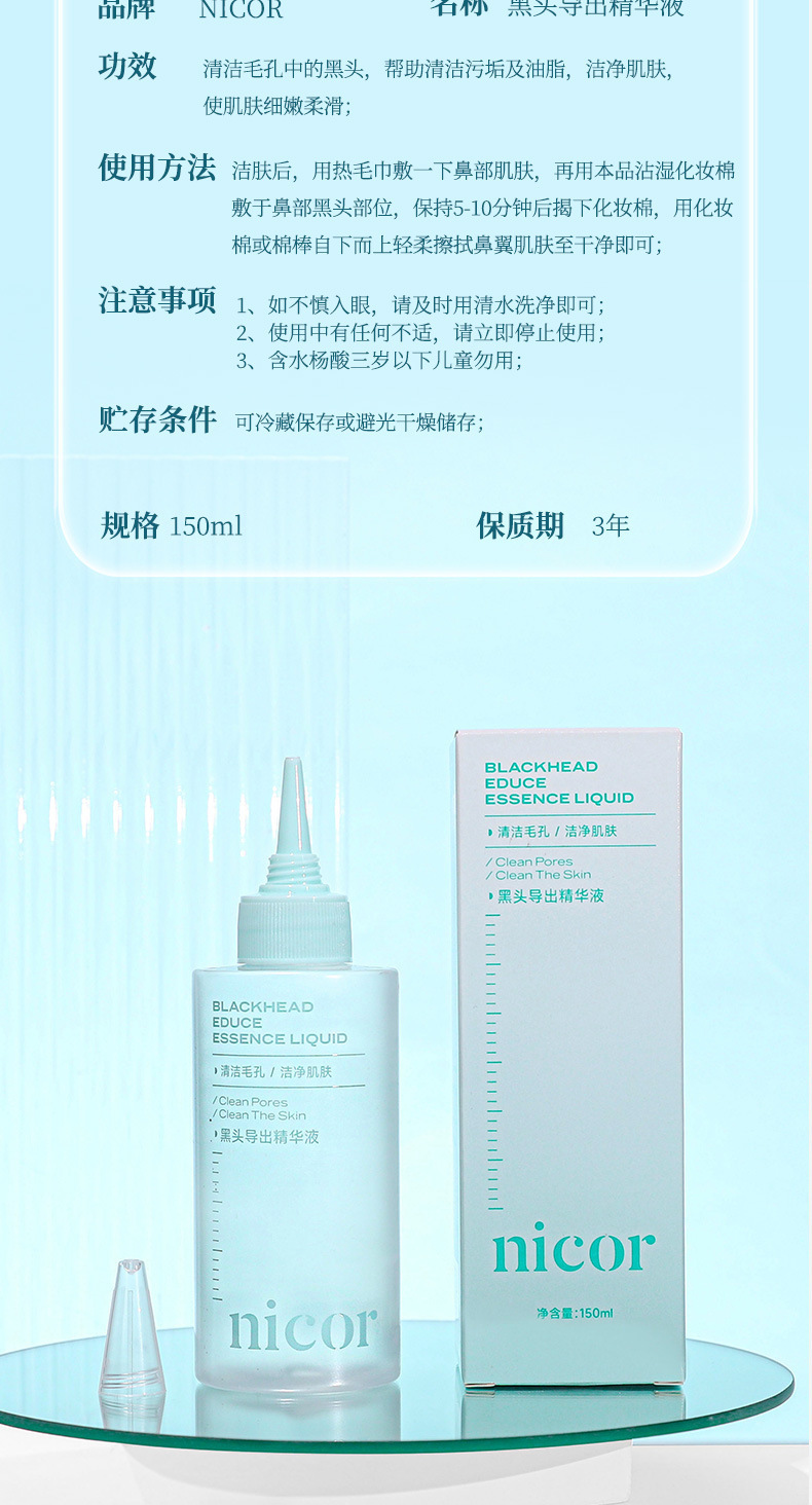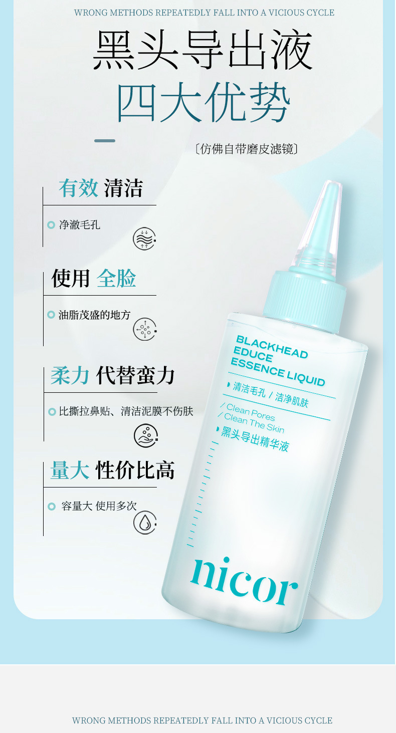 Nicor Blackhead Exporting Essence 150 мл очищает поры, очищает кожу, очищает поры, очищает и освежает волосы.