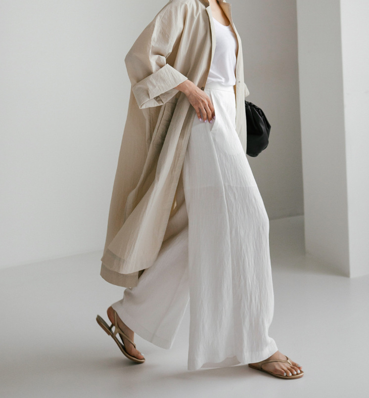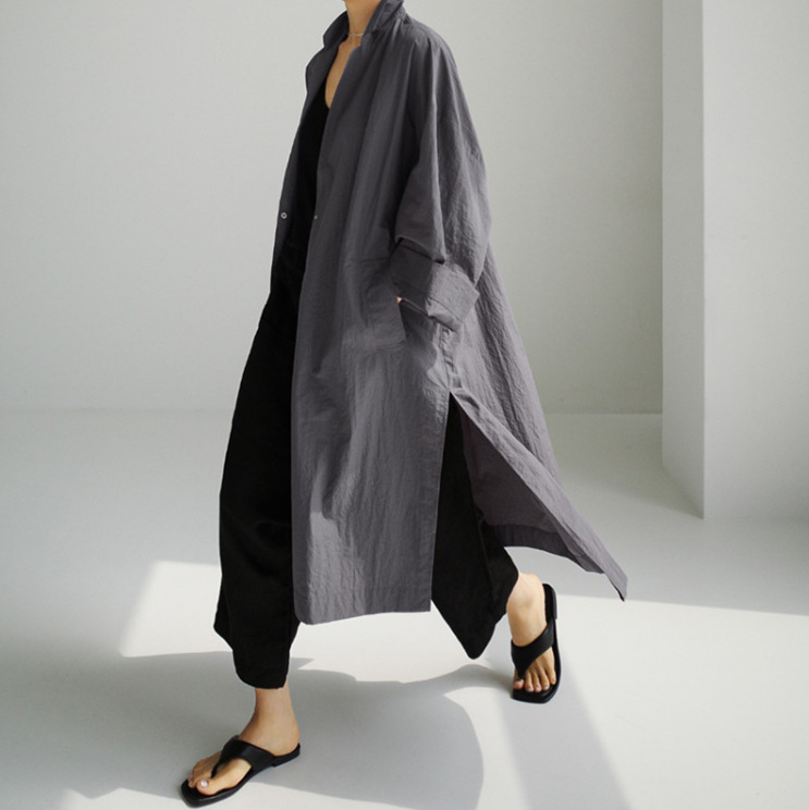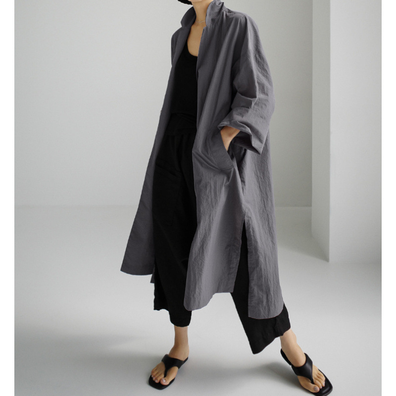 Экспортная осенняя новинка 2025 года: длинный кардиган с длинными рукавами, свободный кэжуал, с разрезом, на одной пуговице, из хлопка и льна.