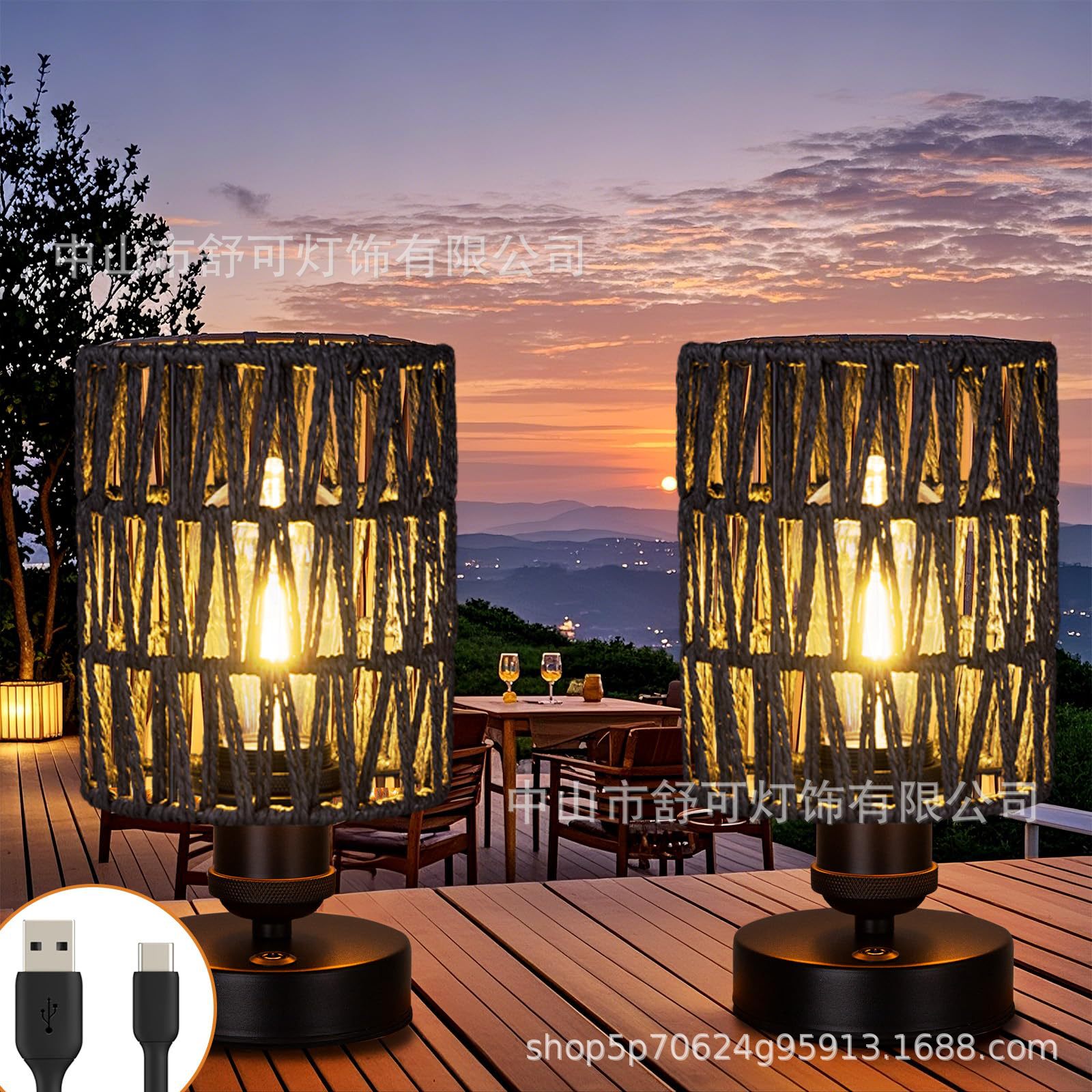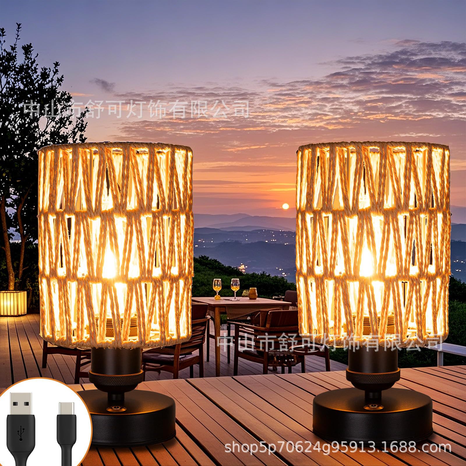 Настольная лампа ручной работы из американской имитации пеньковой веревки Amazon, перезаряжаемая настольная лампа для ресторана B&B, отеля, гостевого дома, спальни