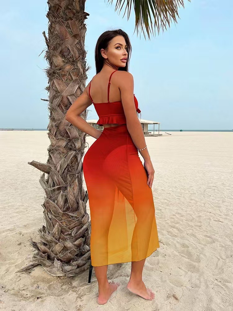 2025 новый раздельный трехкомпонентный консервативный бикини с юбкой в стиле сетки, сексуальный европейский и американский купальник Amazon оптом