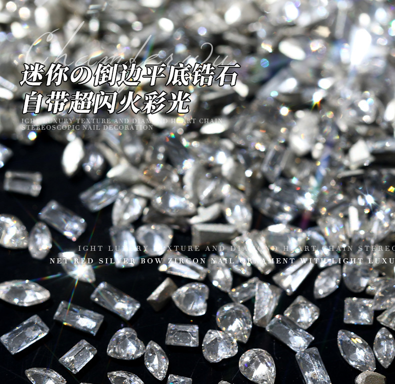 Цирконовые украшения для дизайна ногтей, супер-флэш-огонь, свет, скошенные мини-плоские бриллианты с прозрачным белым цветом, бриллианты специальной формы, ювелирные изделия для дизайна ногтей, оптовая продажа