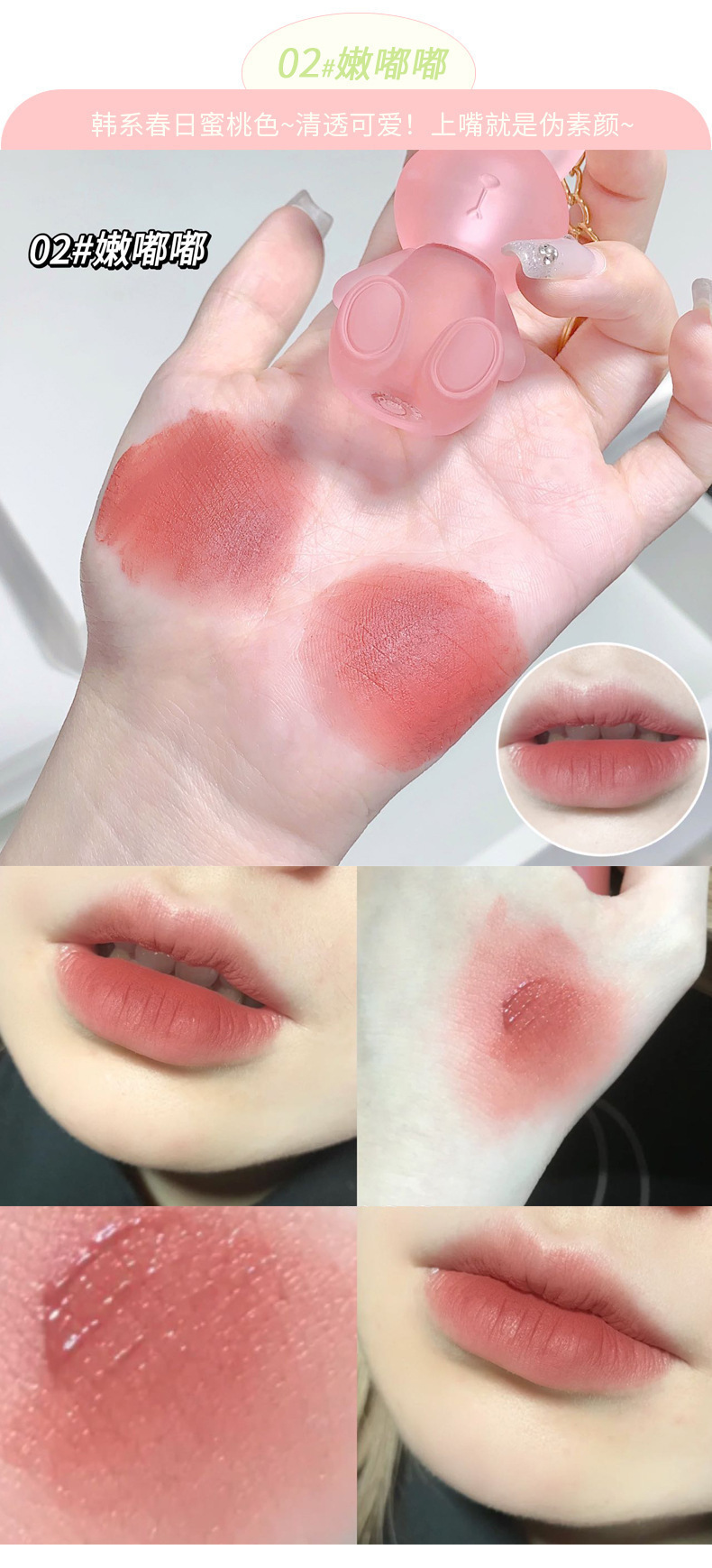 Брелок с медведем Gege, кролик, губная помада, низкая насыщенность, матовый, матовый, искусственный макияж, отбеливающая глазурь для губ