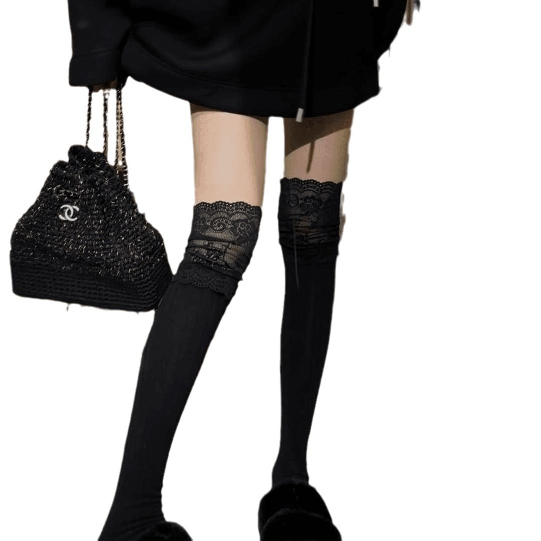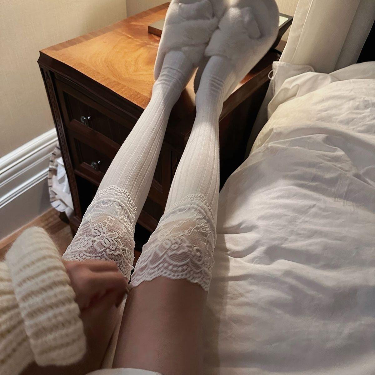 Кружевное высокое значение кружева, колено чулки, женский летний новый вертикальный рисунок тонкий и чистый ветер jk японский тренд