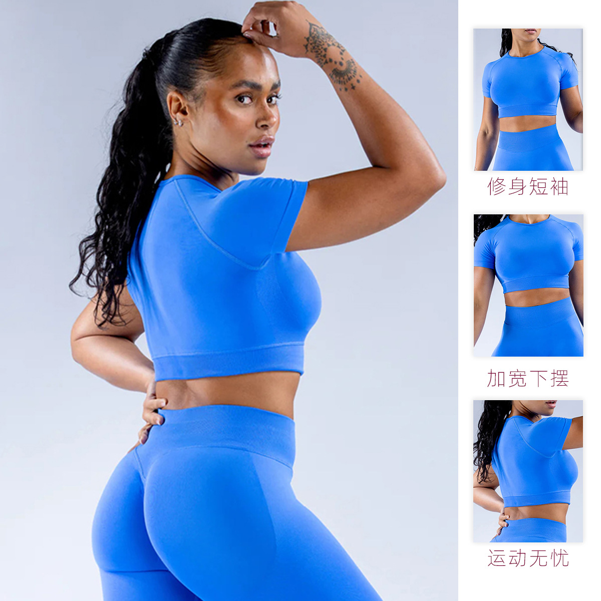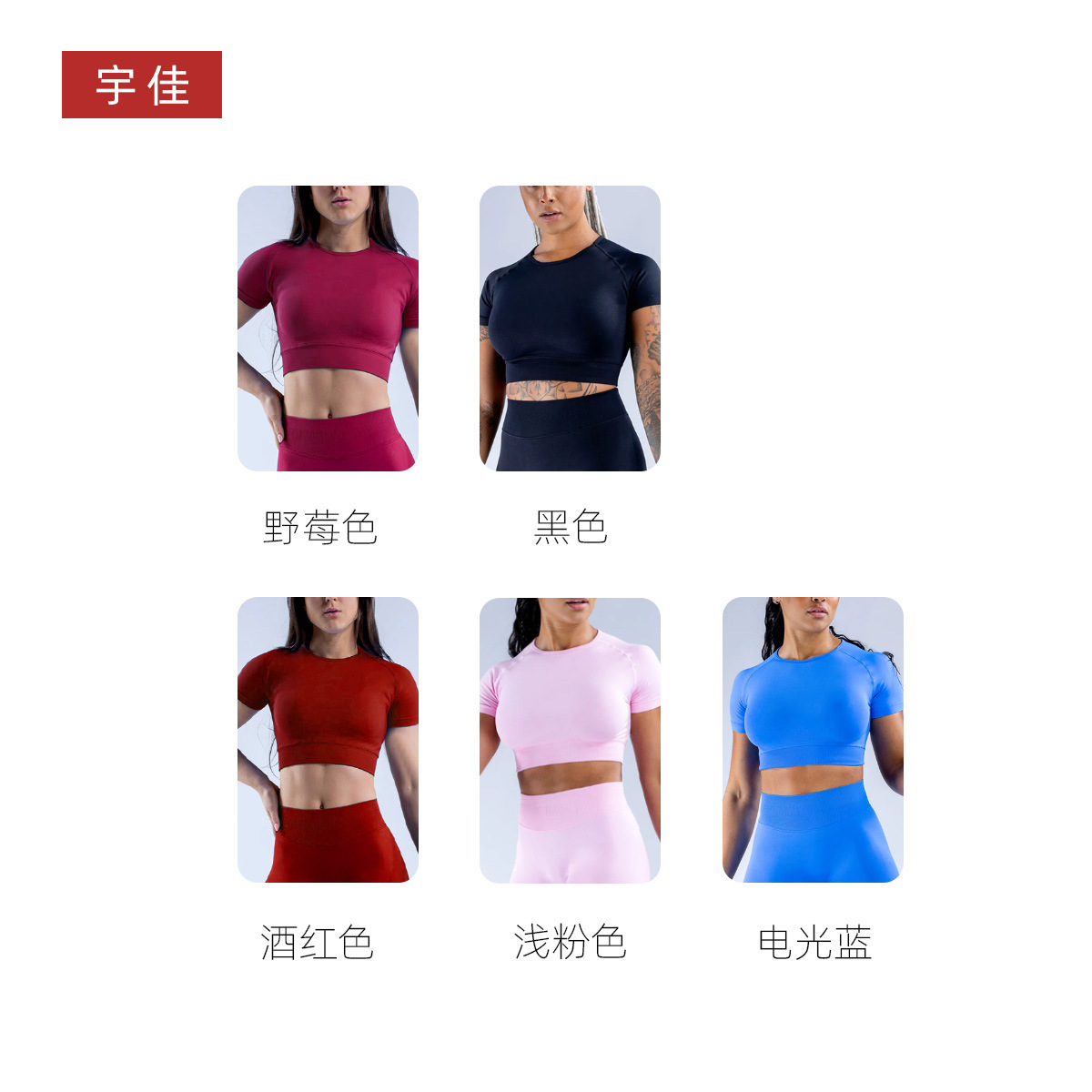 Yujia DX: Новая европейская и американская коллекция бесшовных спортивных футболок с коротким рукавом для активного отдыха, бега, йоги, влагоотводящих, быстросохнущих, облегающих.