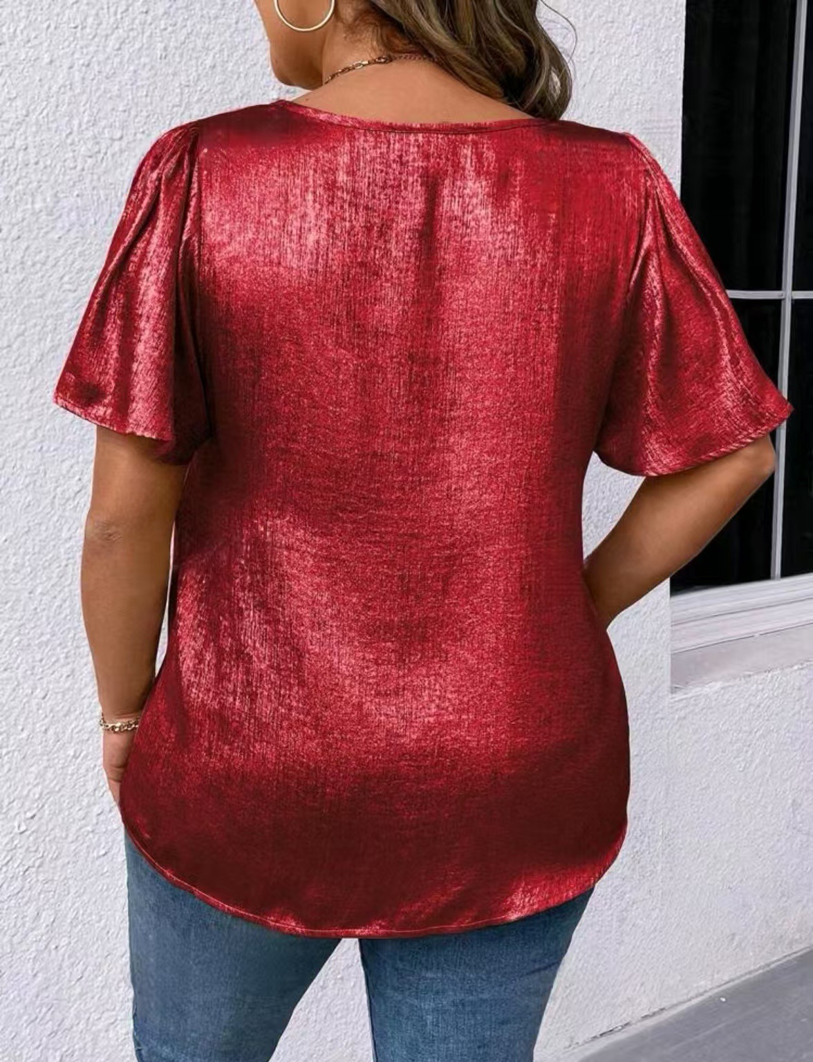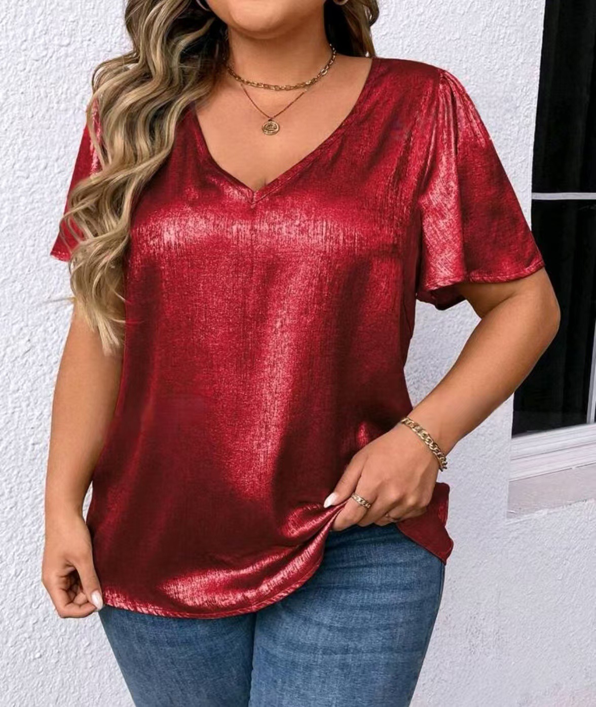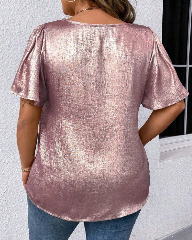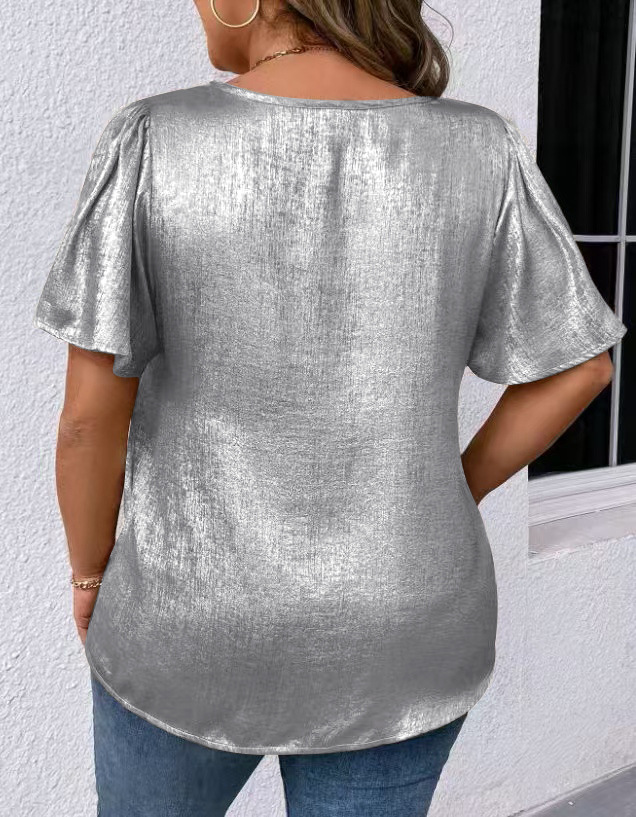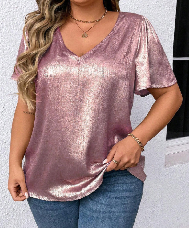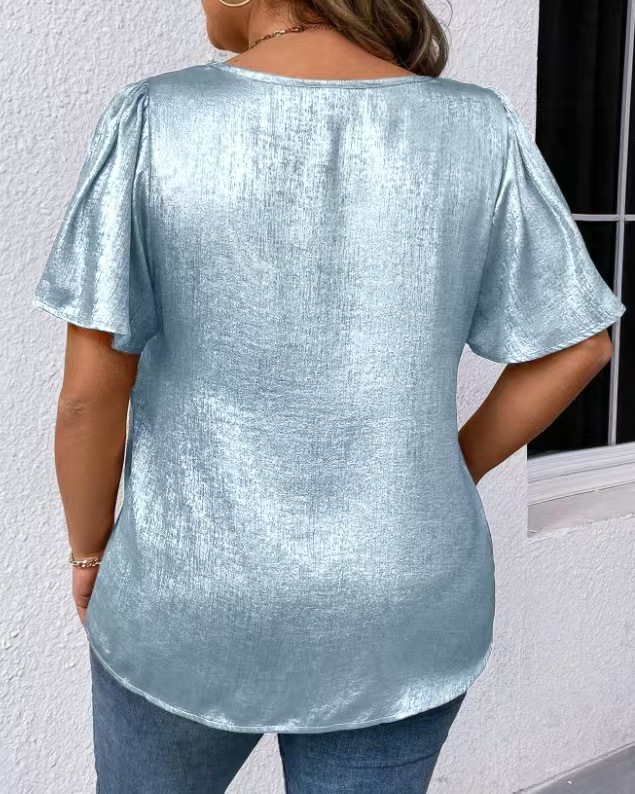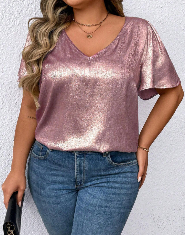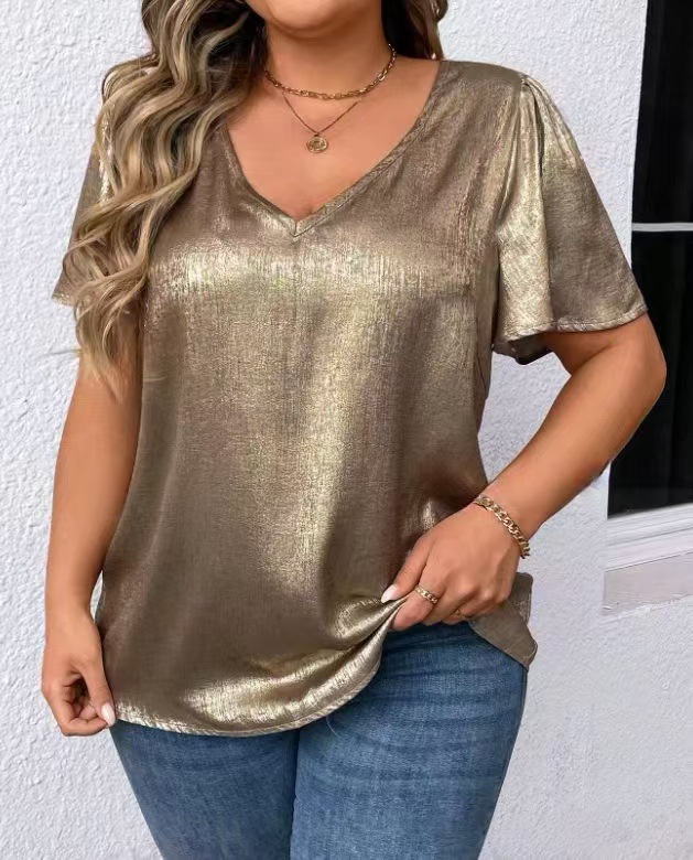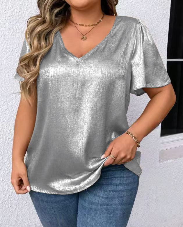 2025 Европейская и американская трансграничная независимая станция Amazon, весенне-летняя новая свободная женская футболка с v-образным вырезом и короткими рукавами, чистый цвет