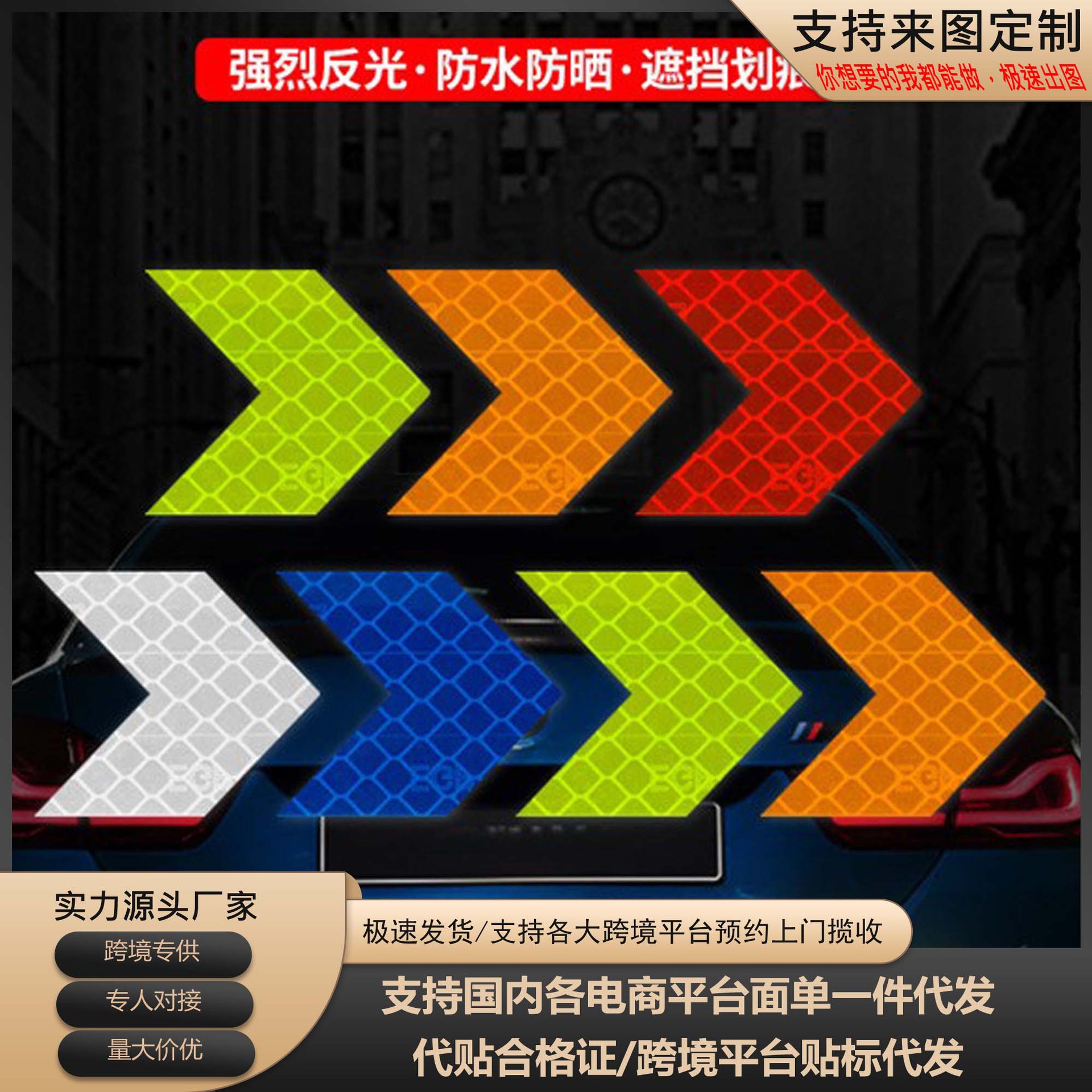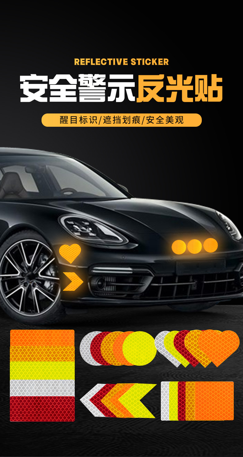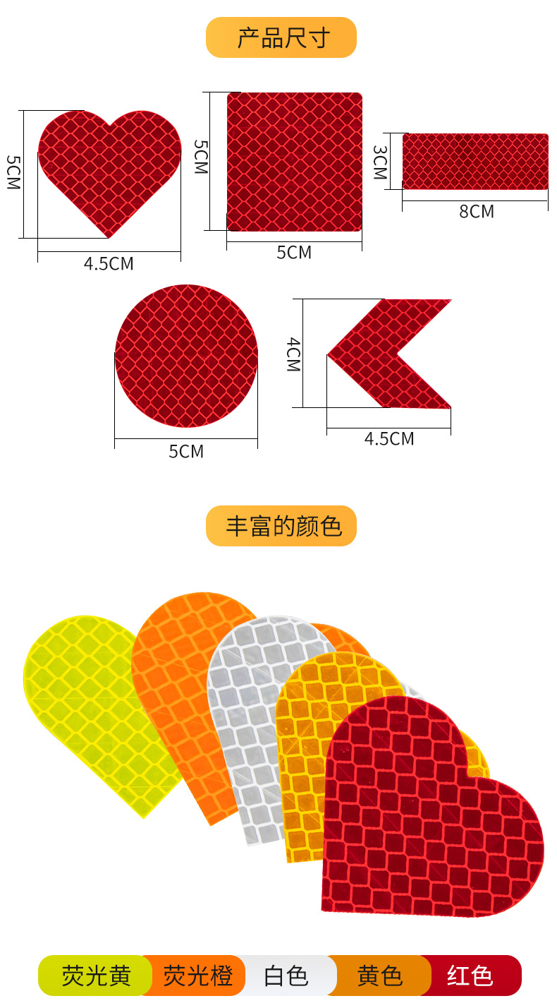 Светоотражающие наклейки, наклейки ночного предупреждения, наклейки на трамвайный шлем, наклейки на багажник мотоцикла, наклейки на хвост автомобиля, светоотражающие наклейки в форме сердца