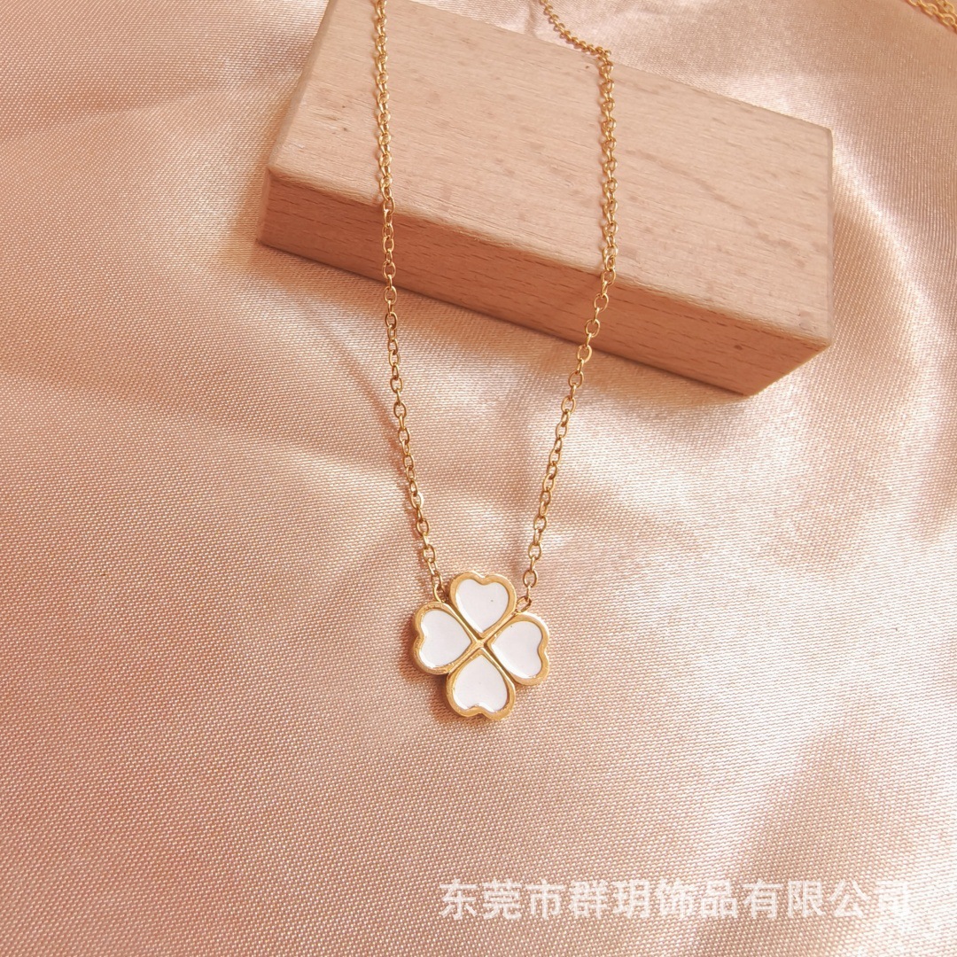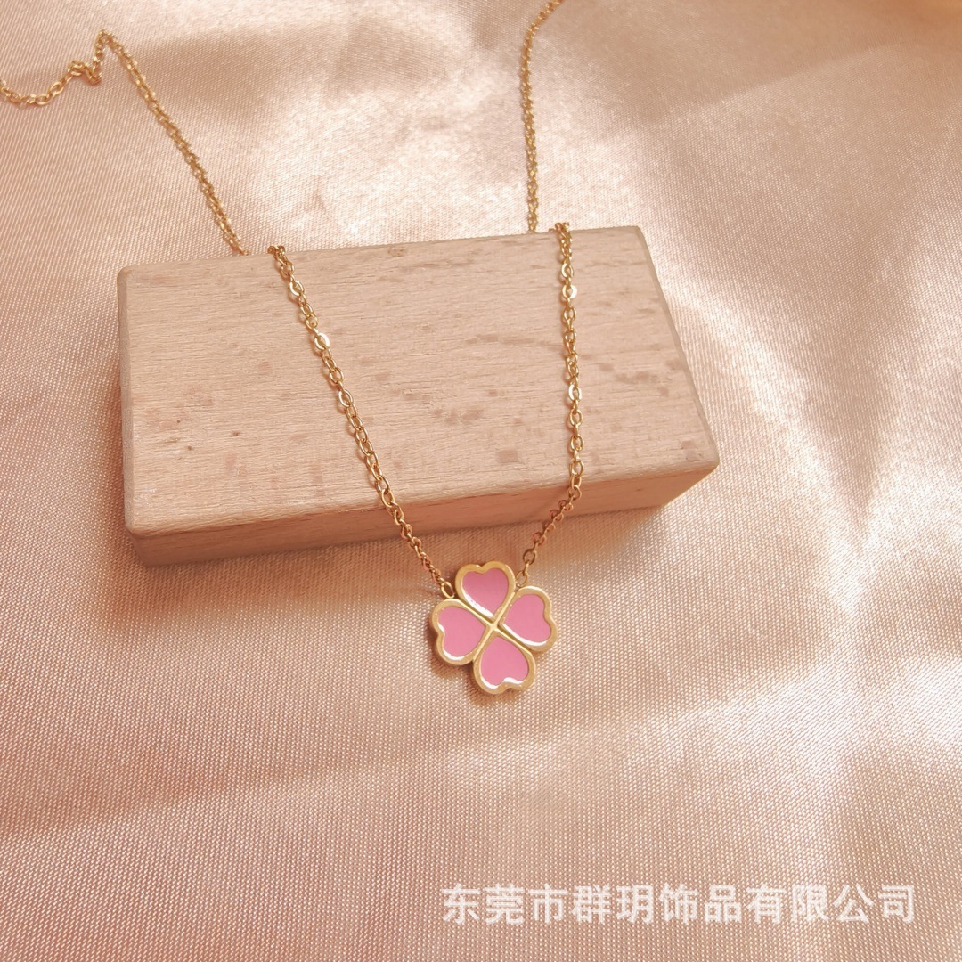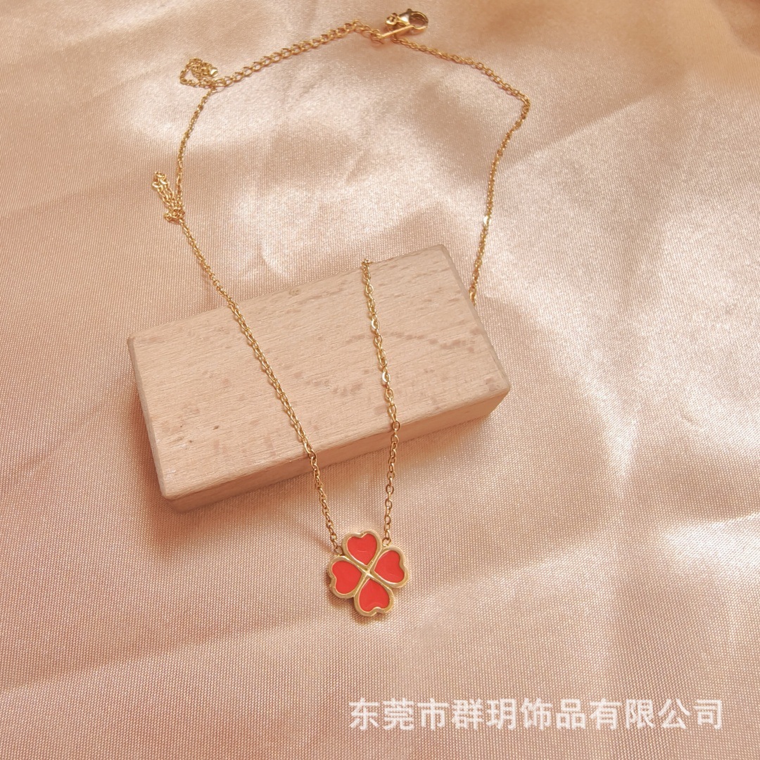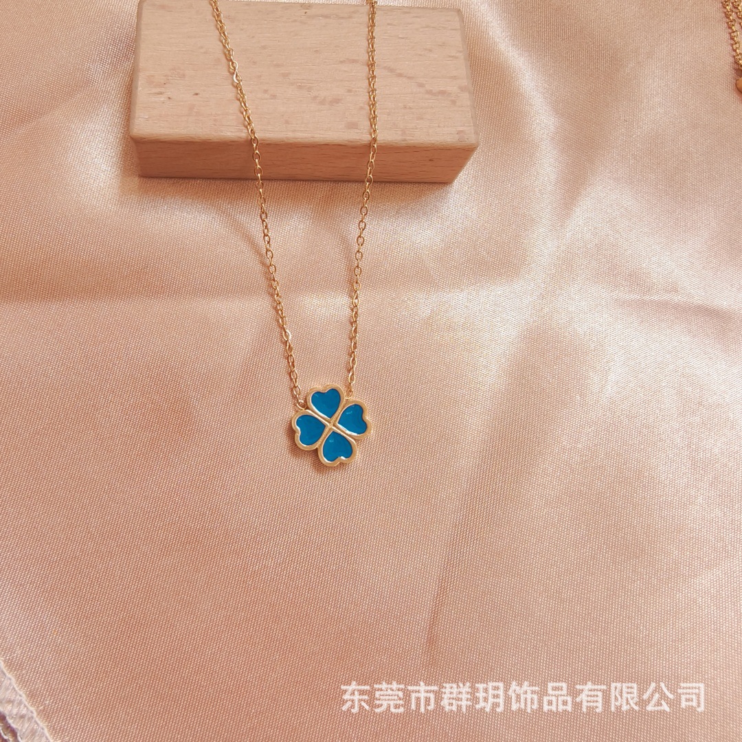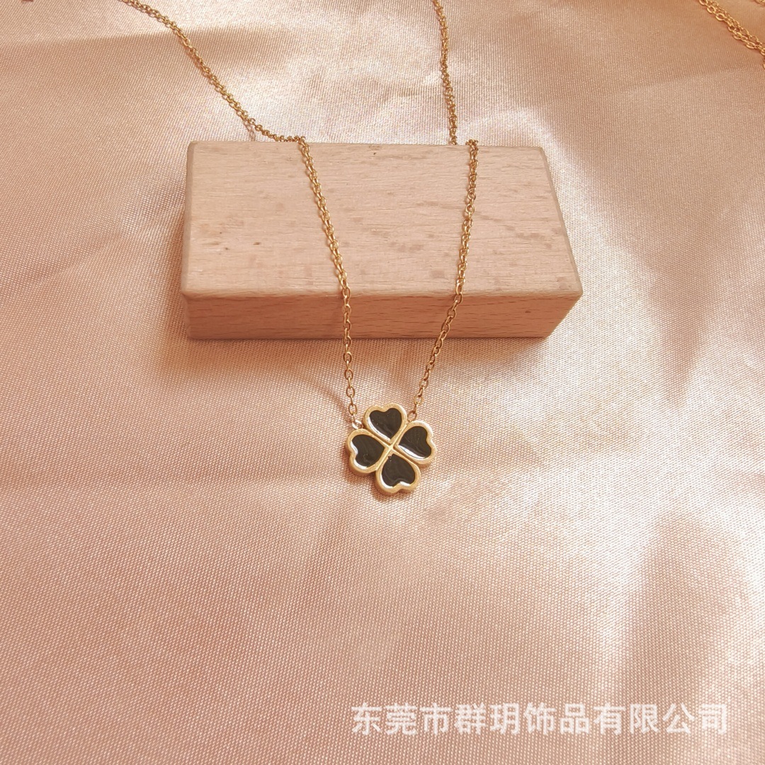 Ожерелье не выцветает женский летний 18-каратный двухсторонний клевер ожерелье Горячая продажа титановой стали модные аксессуары высокого уровня чувство ожерелье