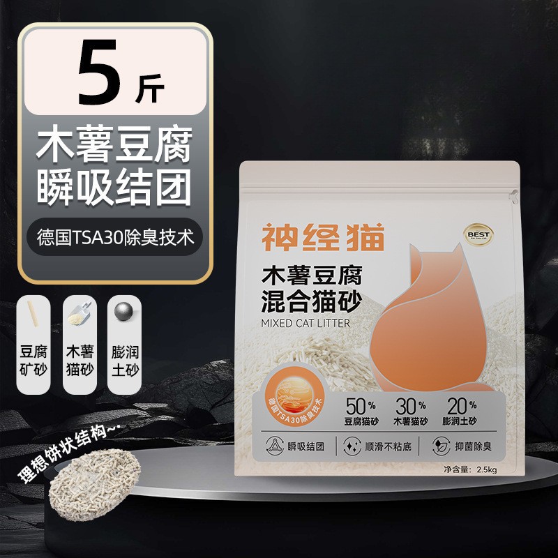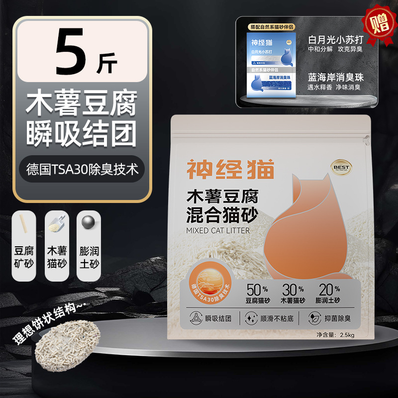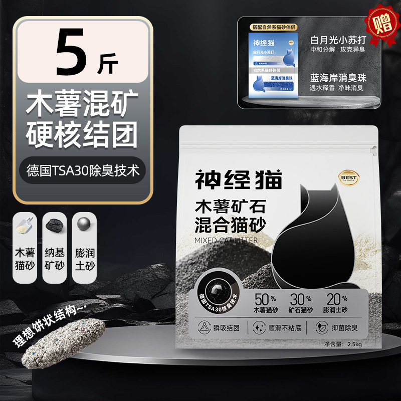 Минеральный песок с бесплатной доставкой, дезодорирующий натриевый минеральный комкующийся мало пыльный наполнитель для кошачьего туалета, антипригарный тофу, смешанный бентонит 5kg для кошачьего туалета.
