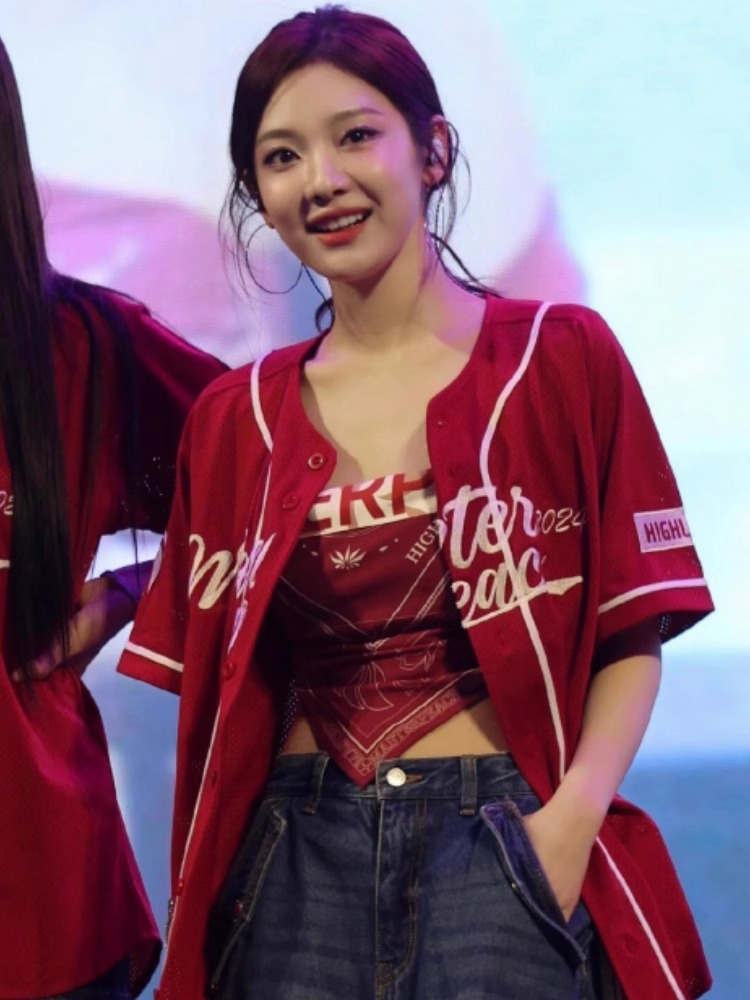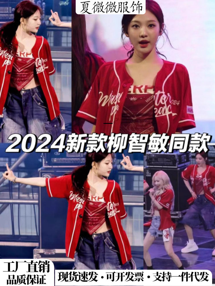 KPOP женская группа Лю Чжиминь с тем же костюмом песни aespa, красный сладкий и пряный стиль джазовый танец хип-хоп топ