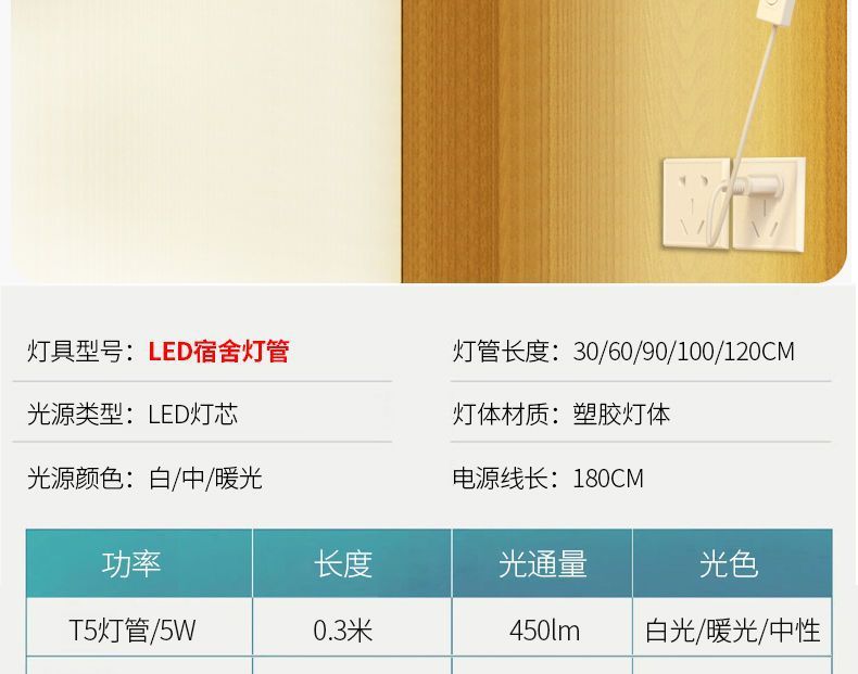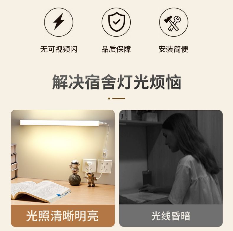 Светодиодная люминесцентная лампа, розетка, подключаемая к розетке, настольная, домашняя, студенческое общежитие, энергосберегающая светодиодная лампа