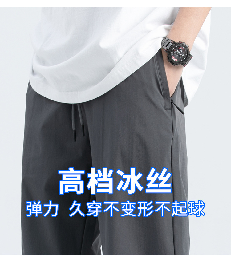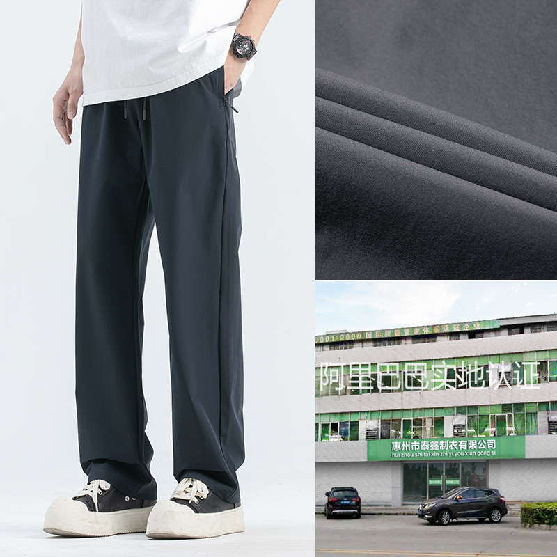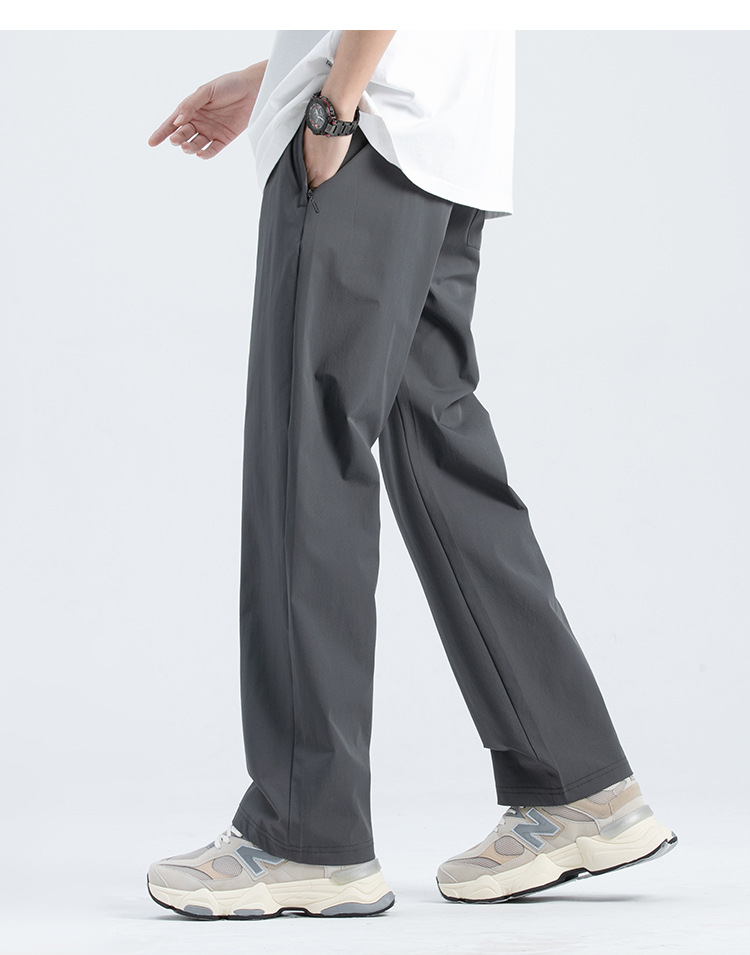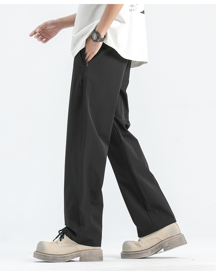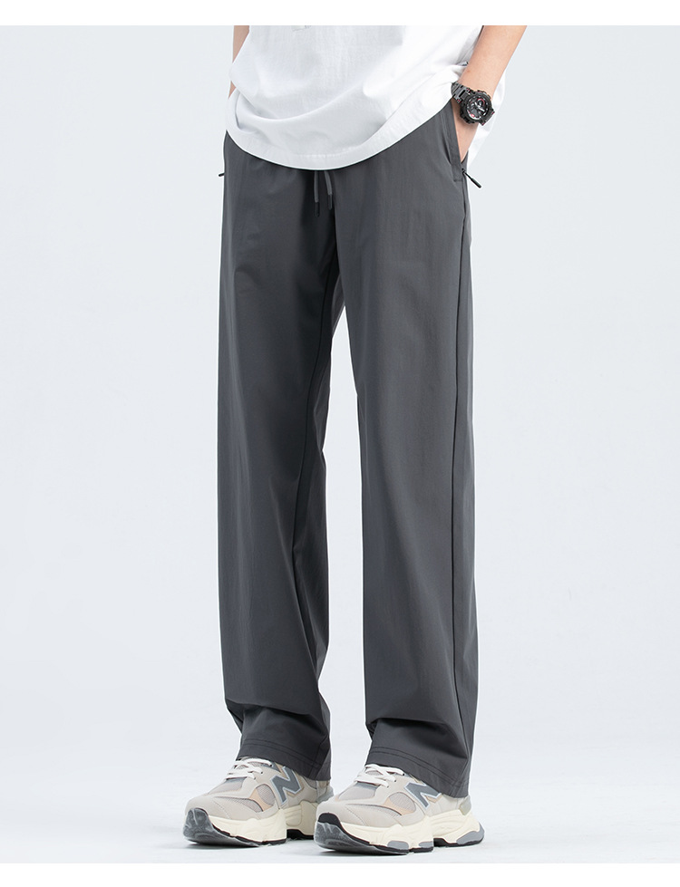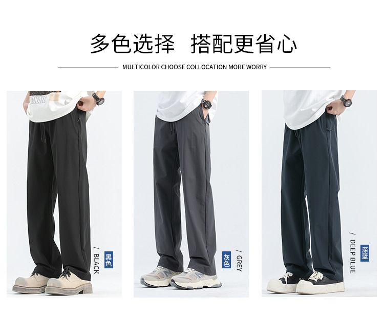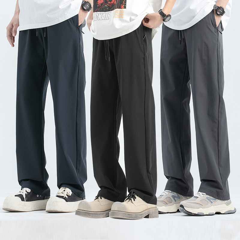 Мужские повседневные брюки Taobao, летние тонкие свободные спортивные прямые брюки, весенне-осенние универсальные черные длинные брюки из ледяного шелка