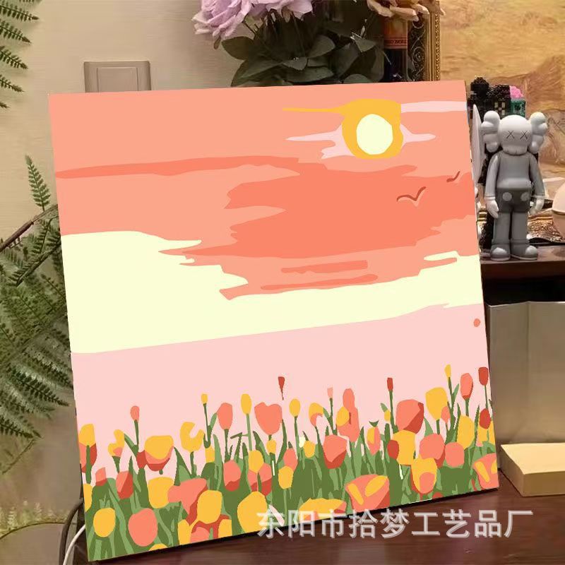 Цветок тюльпана, море, цифровая картина маслом, раскраска своими руками, ручная роспись масляной краской, граффити, живопись, пейзаж, цветы, l, система исцеления