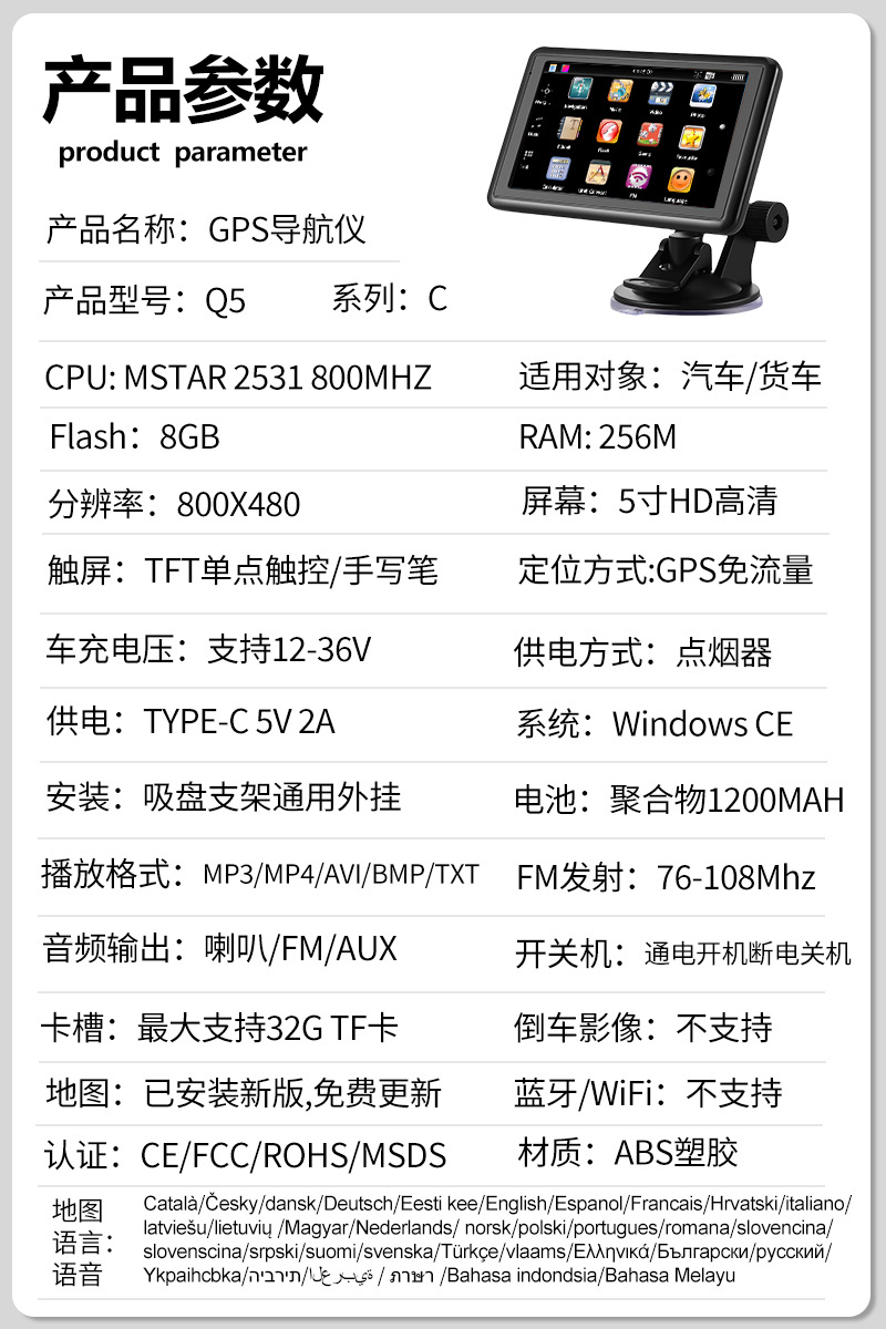 5inch Портативный автомобильный GPS-навигатор для легковых и грузовых автомобилей PND, емкостный, высокого разрешения, 8G+256M TYPE-C