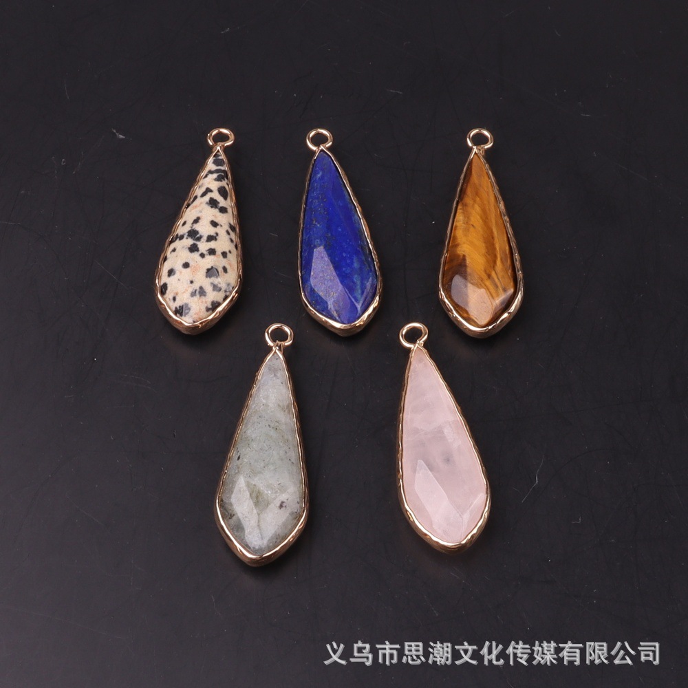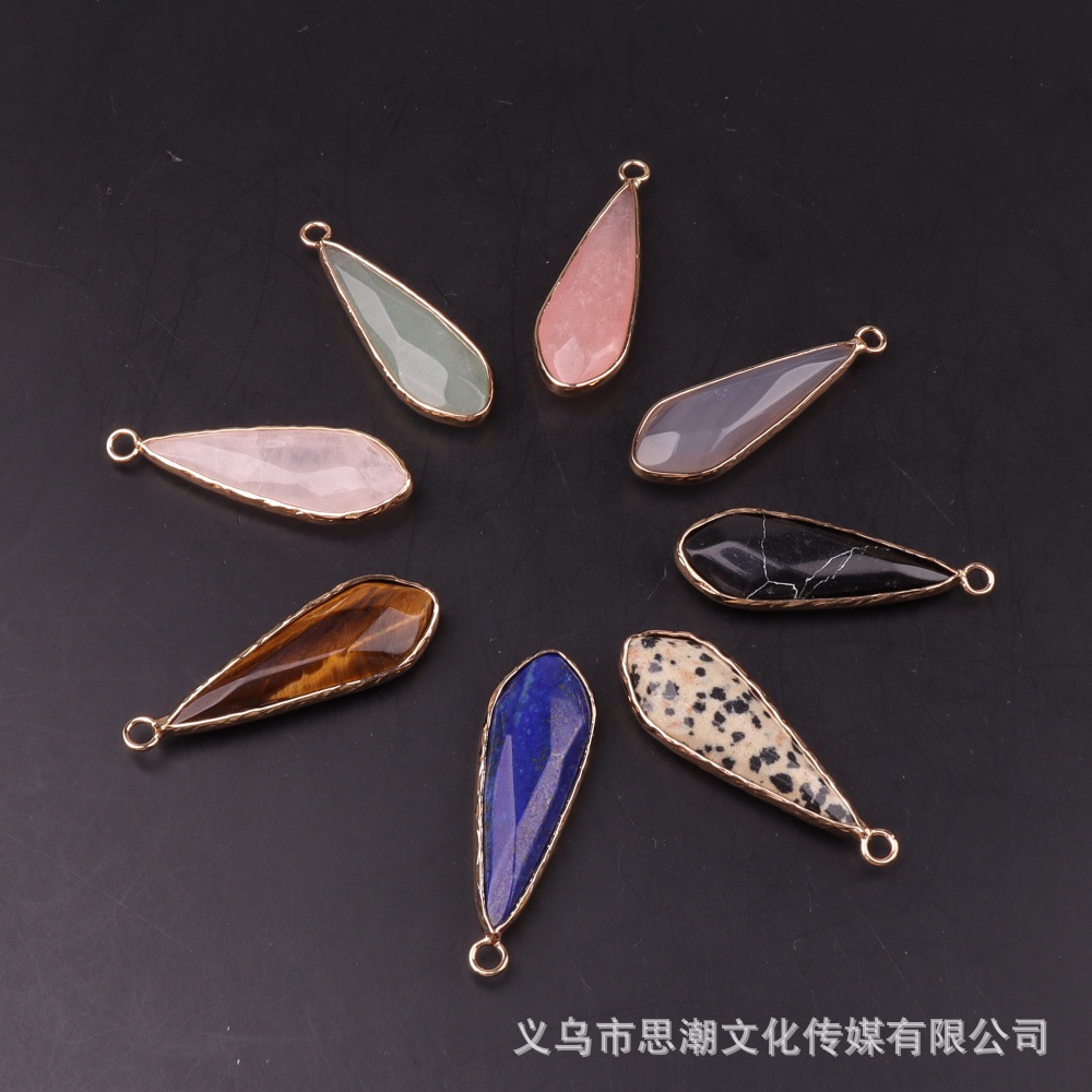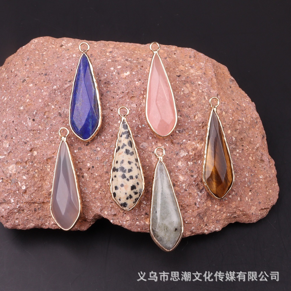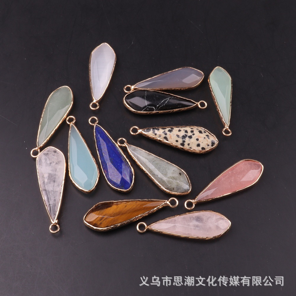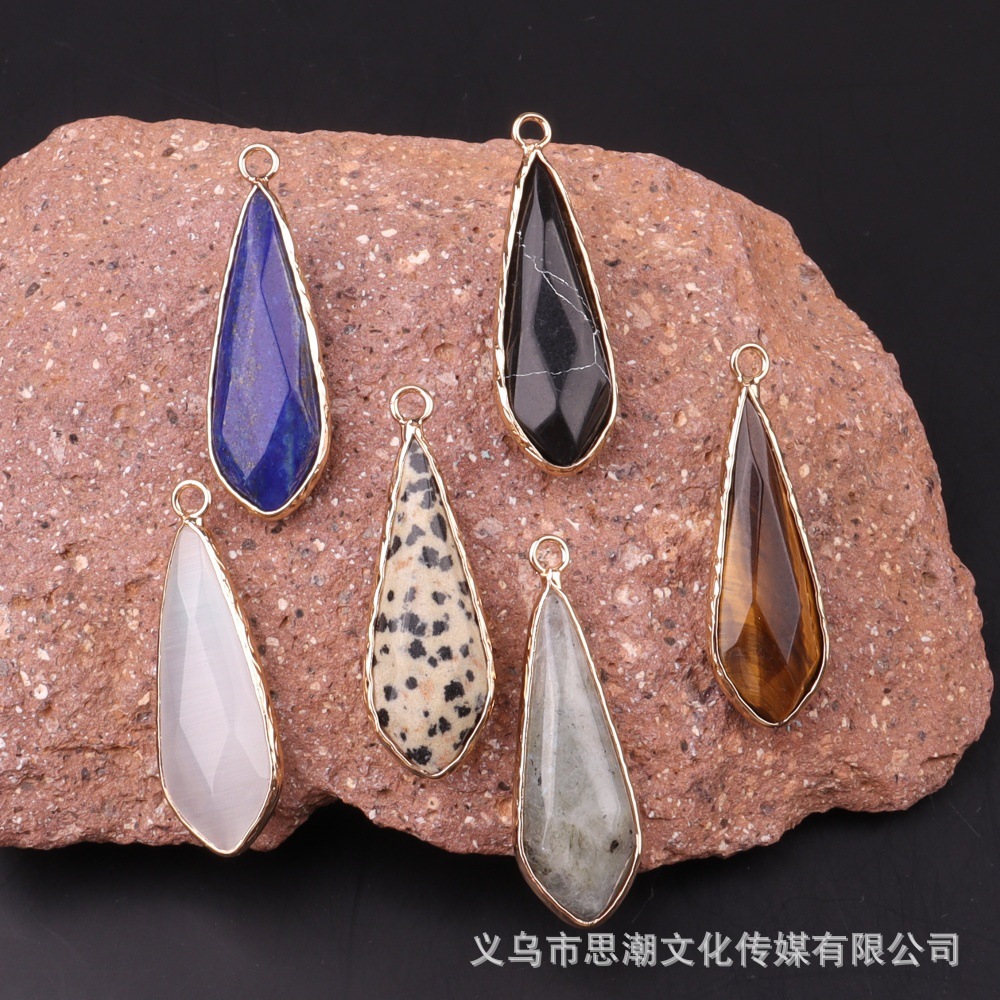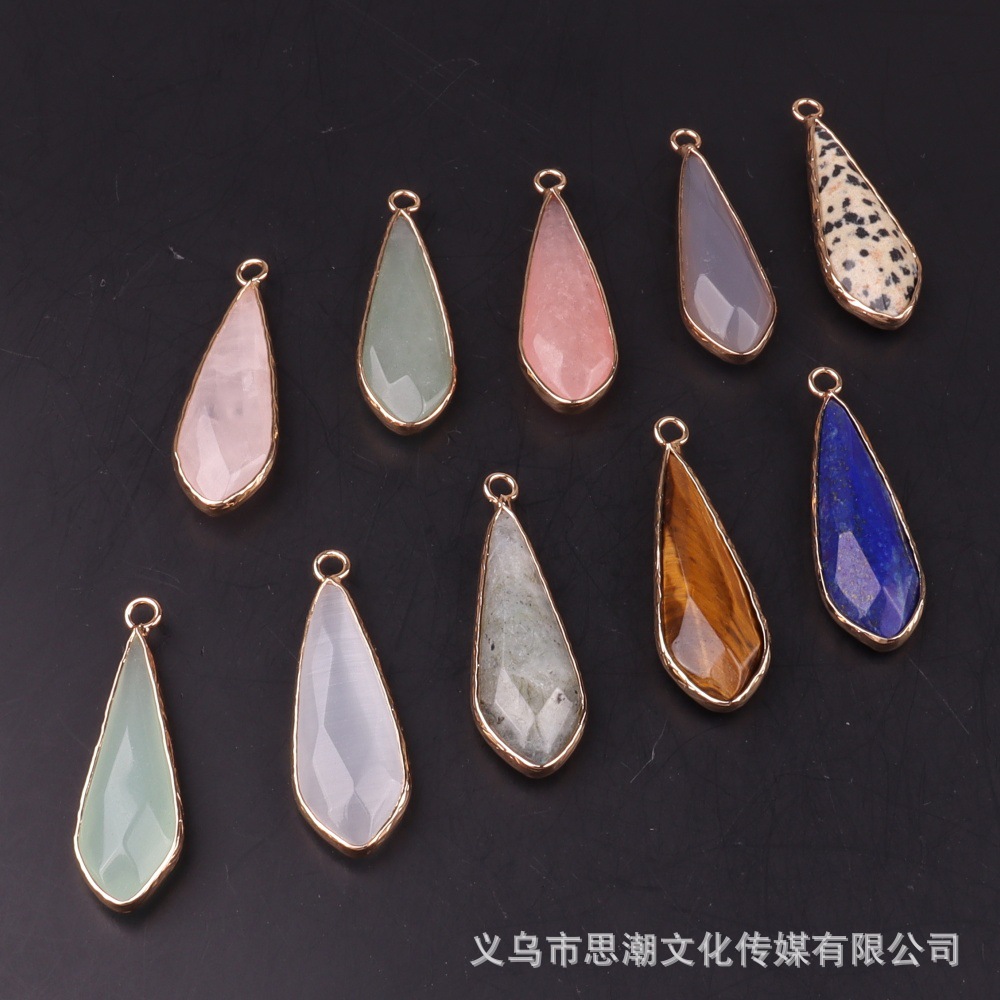 Длинный каплевидный граненый кулон из натурального камня с кристаллами, полудрагоценный камень, одиночный подвесной кулон, серьги «сделай сам», ожерелье, аксессуары