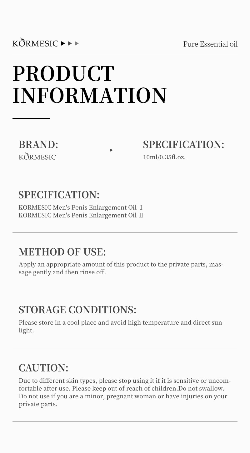 KORMESIC Мужское мощное массажное масло 10 мл [Только для внешнеторговых трансграничных продаж, продажи на внутреннем рынке запрещены, покупка означает отказ от ответственности и ответственности; KORMESIC Мужское мощное массажное масло 10 мл [Только для внешнеторговых трансграничных продаж, внутренние продажи запрещены, покупка означает отказ от ответственности и ответственность]